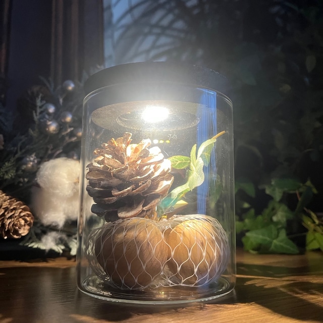 【LEDライト付き】Glass Winter Forest〈S〉檜と松ぼっくりの灯り