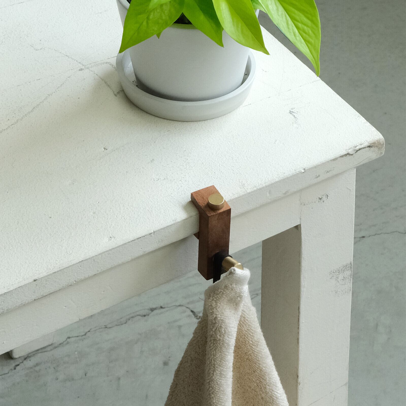 生活感の出やすいフックですが、プラスチックではなくアカシアとブラスでできているので、シックでインテリアに馴染みやすくなっています。