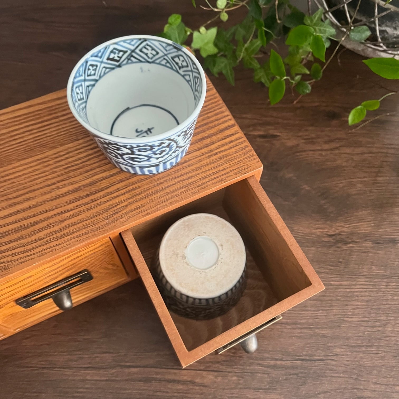 1つの引き出し[内側]W90×D102×h95 ←これより小さいサイズの蕎麦猪口でしたら収納可能です♪