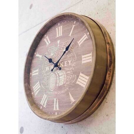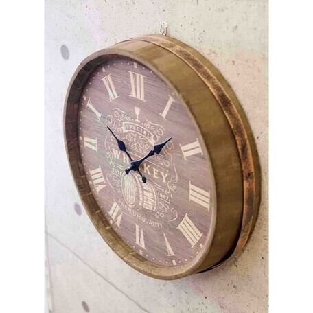 ウイスキー樽をモチーフにデザインされた、個性派ウォールクロック。