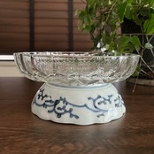 裏返したなます皿の上にガラス皿を重ねることで、テーブルに変化を生み出せます。※器同士の高台サイズを必ずご確認ください。不安定な場合は懐紙や和紙を一枚挟むと安定します。