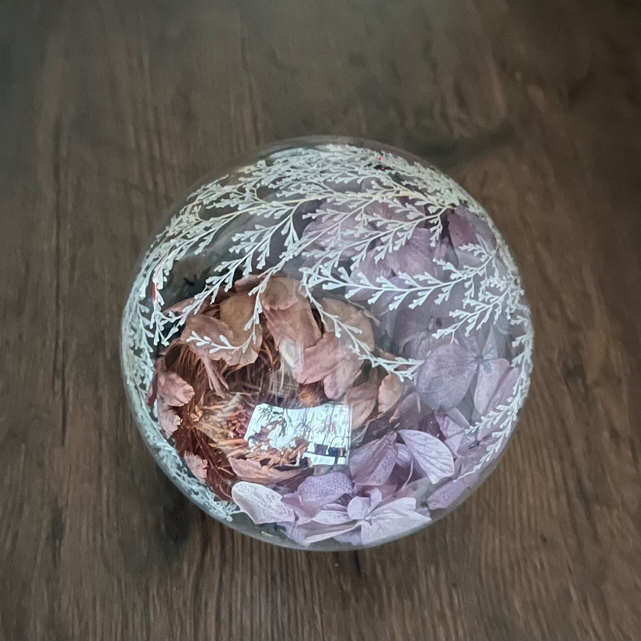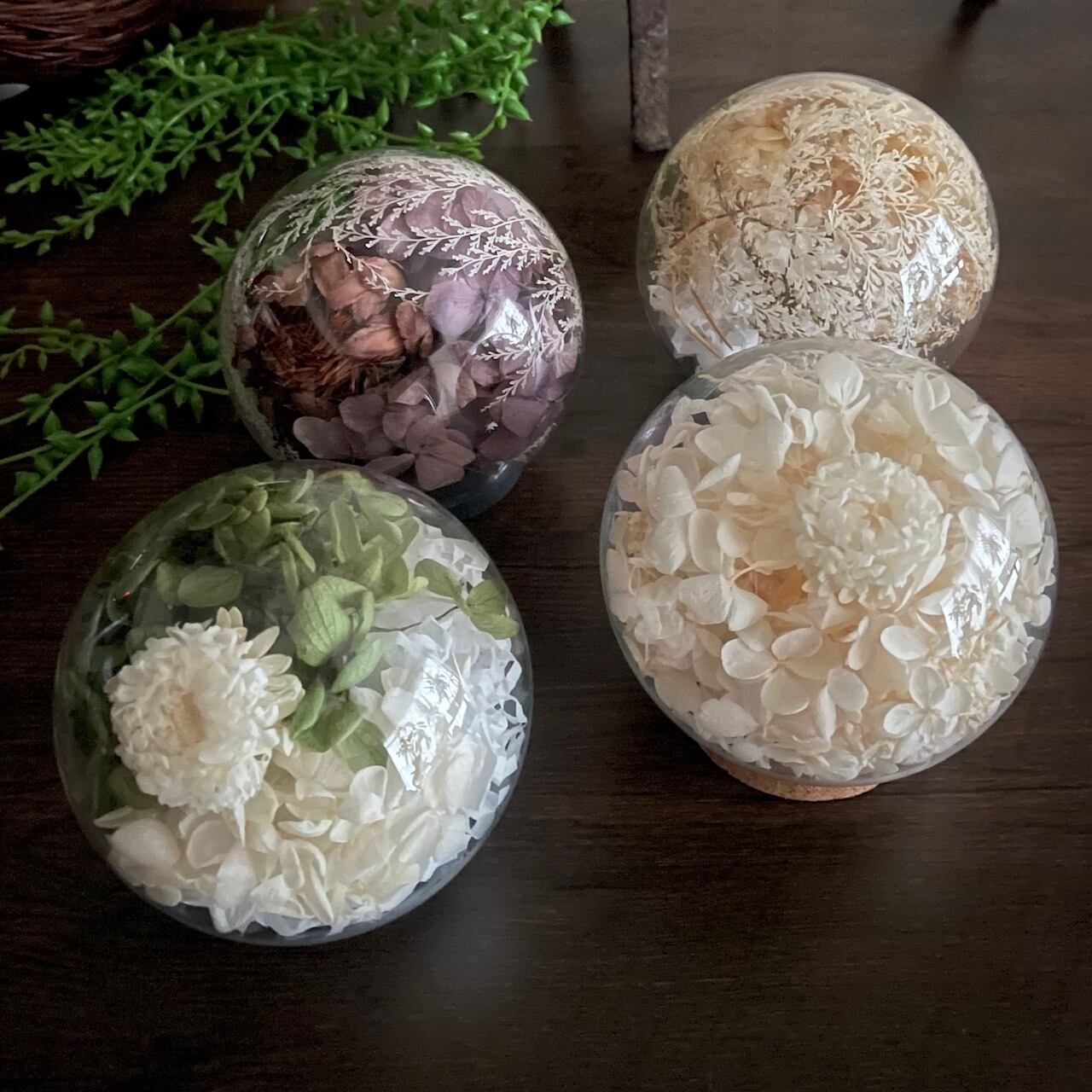 また、ガラスドームはホコリを防ぎ、ドライフラワーの舞い散りも軽減。お手入れも簡単です◎