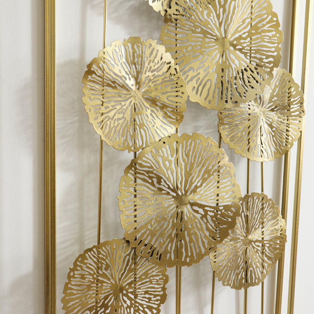 重なり合うゴールドの蓮の葉が綺麗なモダンテイストのアイアンウォールアート、壁飾りです。