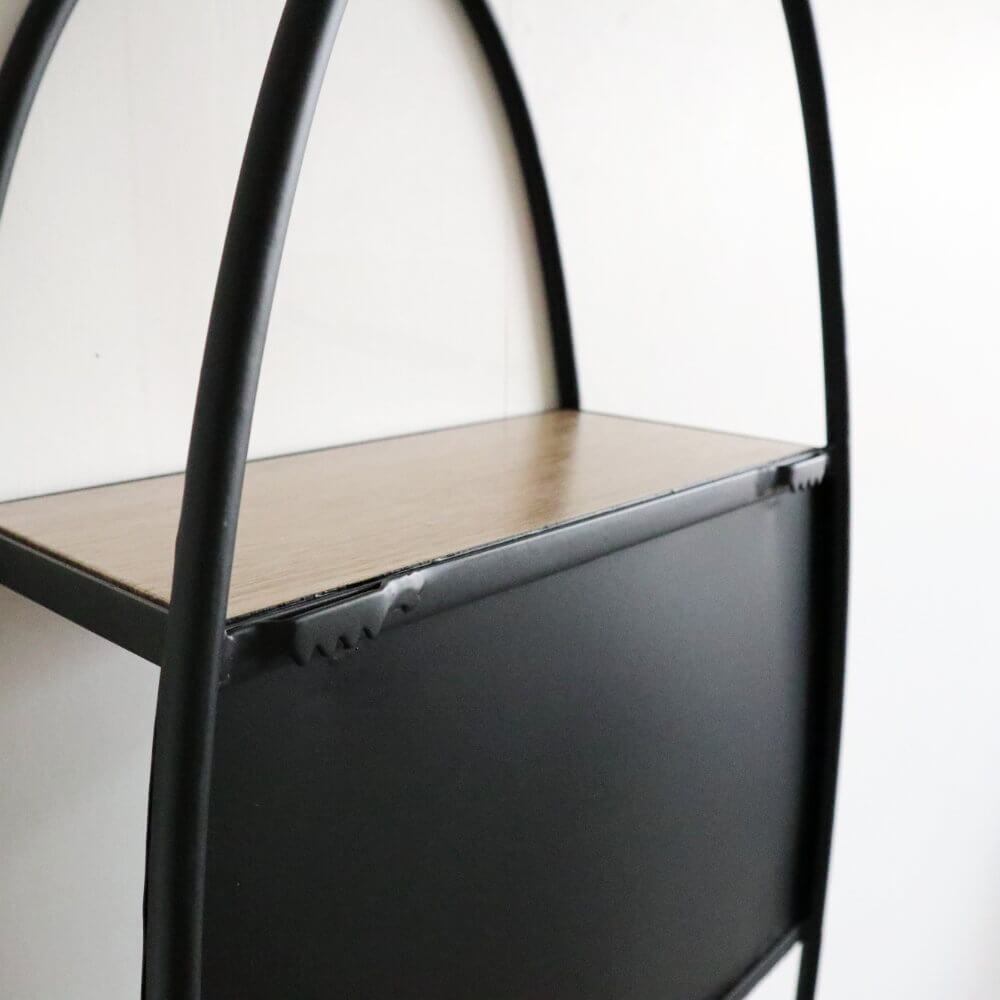 オーバルシェイプ・アイアンディスプレイラック|壁掛け縦長シェルフ