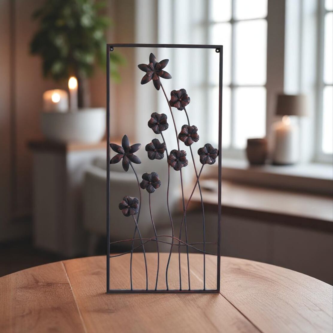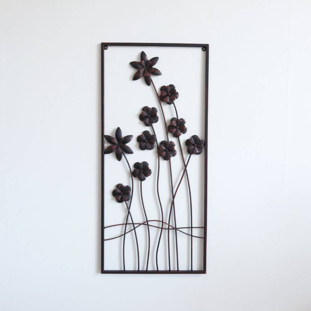 アンティークブラウン・フローラルウォールパネル - 優雅な五本花の壁飾り