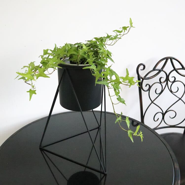 ブラックアイアンがオシャレなスタンド型プランター(鉢カバー)です。