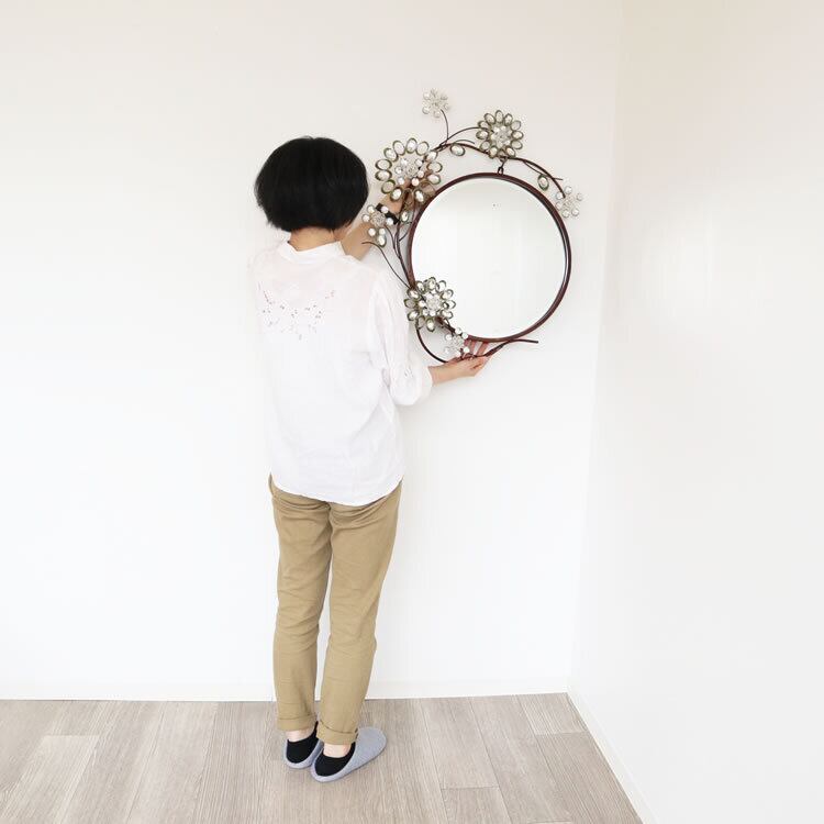 アンティーク調 ミラー 丸型 花 キラキラ アクリルフラワーフローラ・ミラージュ|花咲くアクリルフラワーの輝き鏡