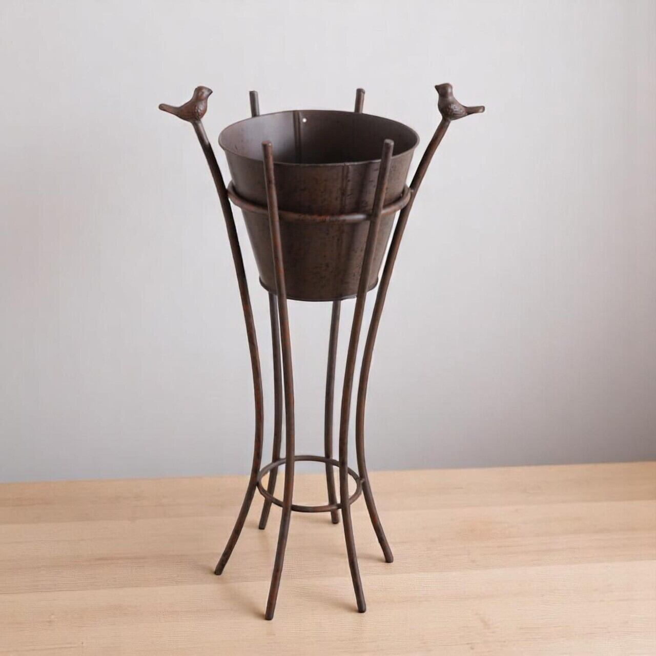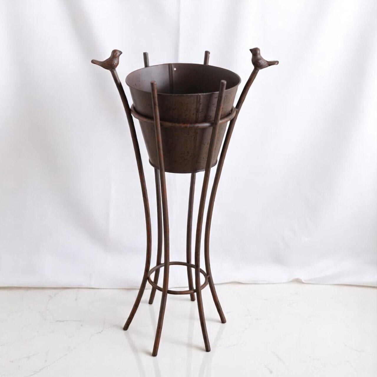 お部屋のコーナーへ鉢カバーごと入れて素敵なグリーンを演出できるスタンド型フラワースタンドです。