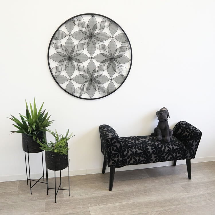 丸の中に浮かぶ花の文様がお部屋のワンポイントになります♪