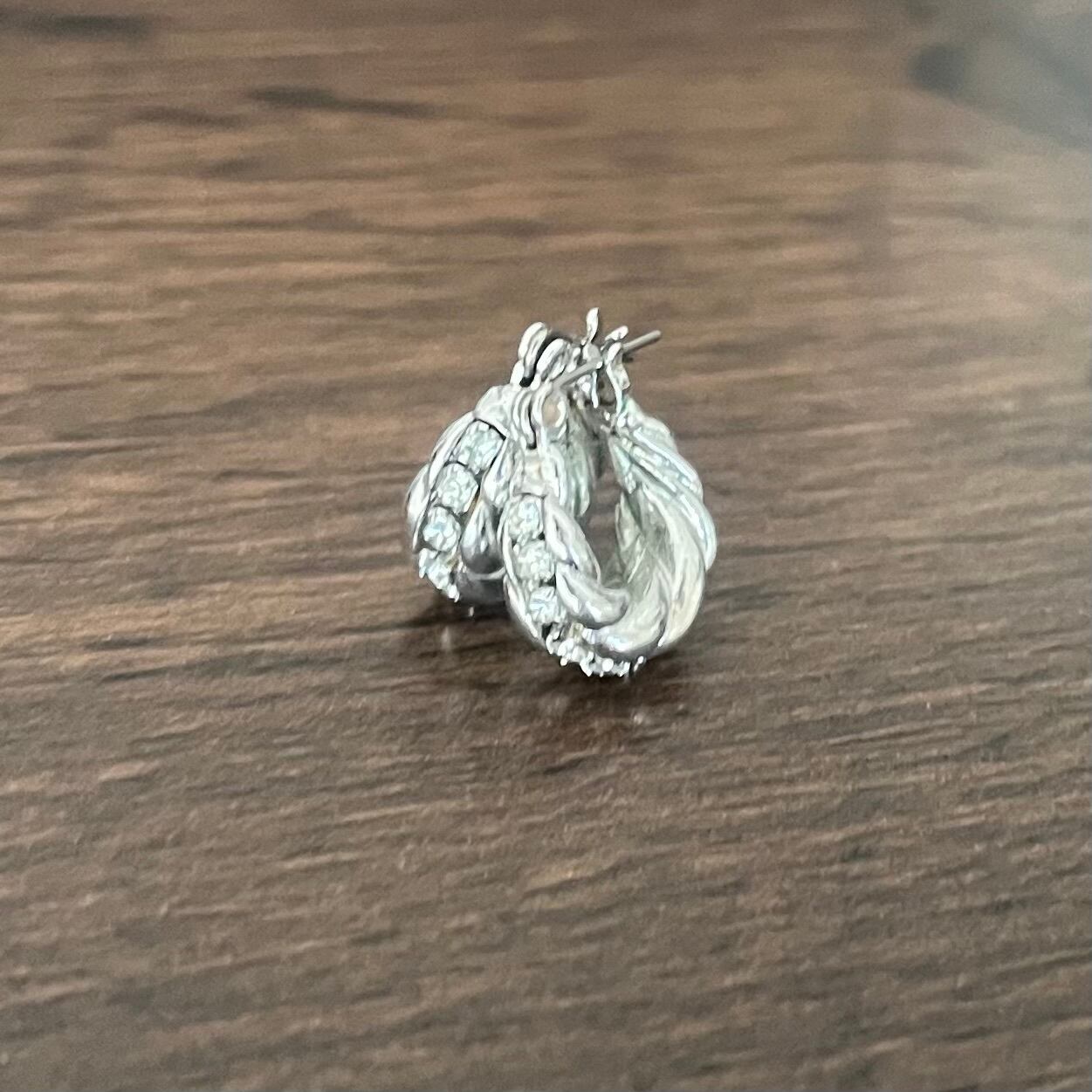 【ヴィンテージジュエリー】ラインストーン フープピアス シンプル シルバーステンレス