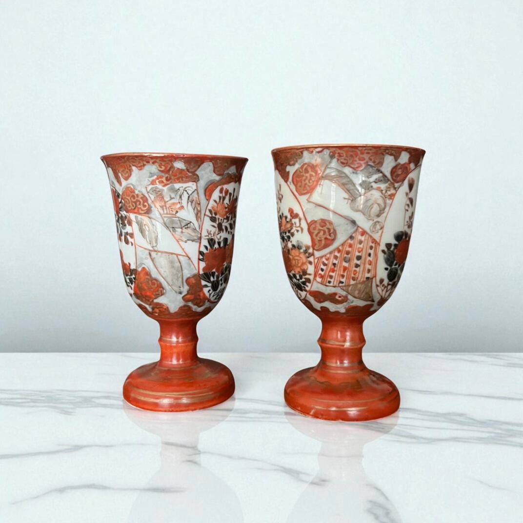 明治九谷宮本窯馬上杯型盃一対(2客セット)