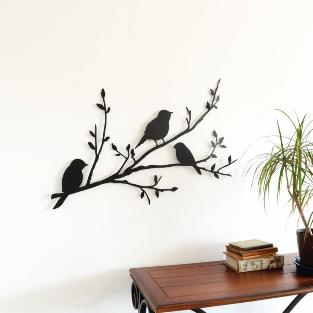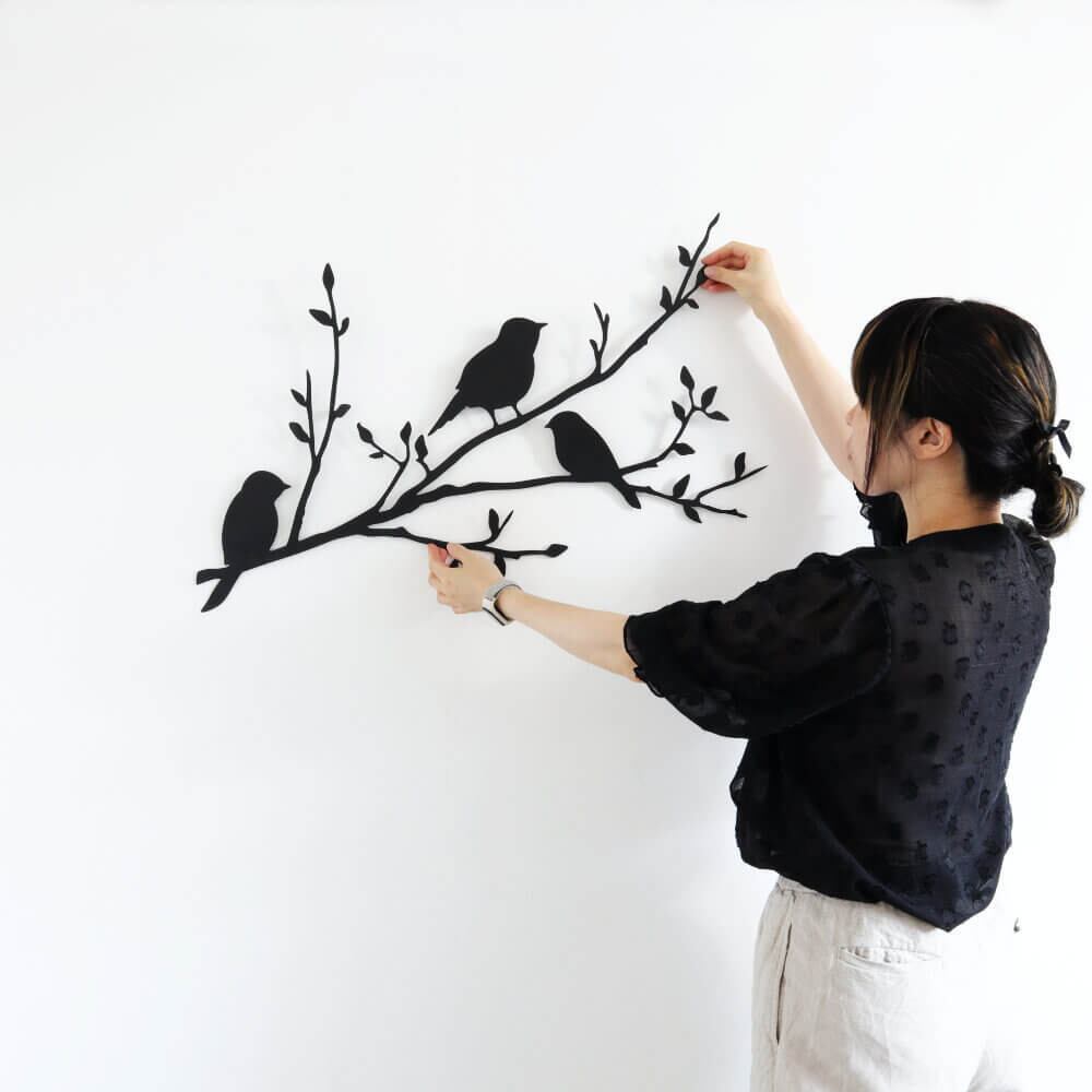 影絵のような枝に止まる小鳥のシルエットが美しいデザイン。
