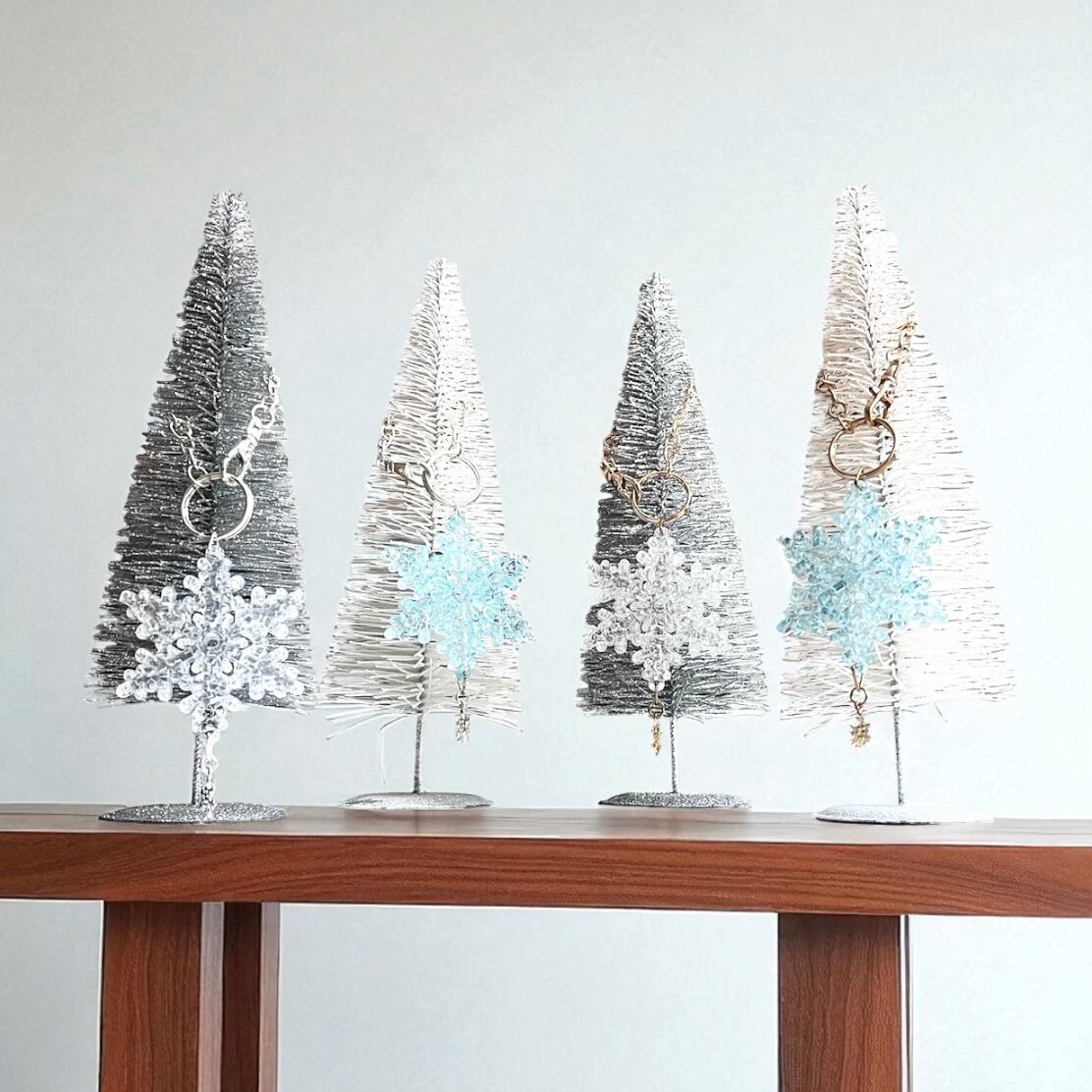 2セット 飾れる バッグチャーム (ゴールド) ツリー&雪の結晶 キーホルダー シルバー&ホワイト