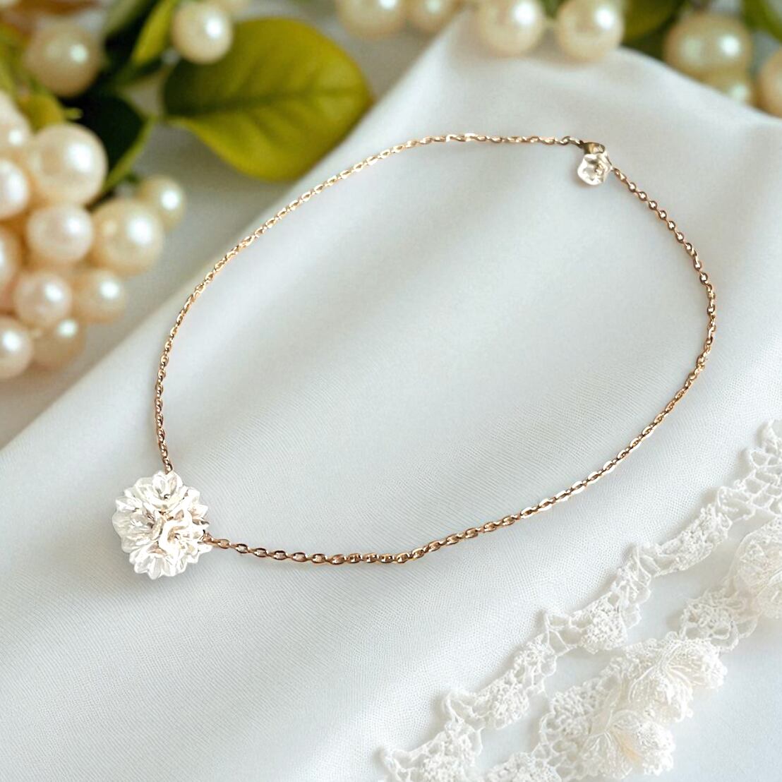 小さな透明フラワーをまん丸に束ねた、光を纏うようなネックレス✨