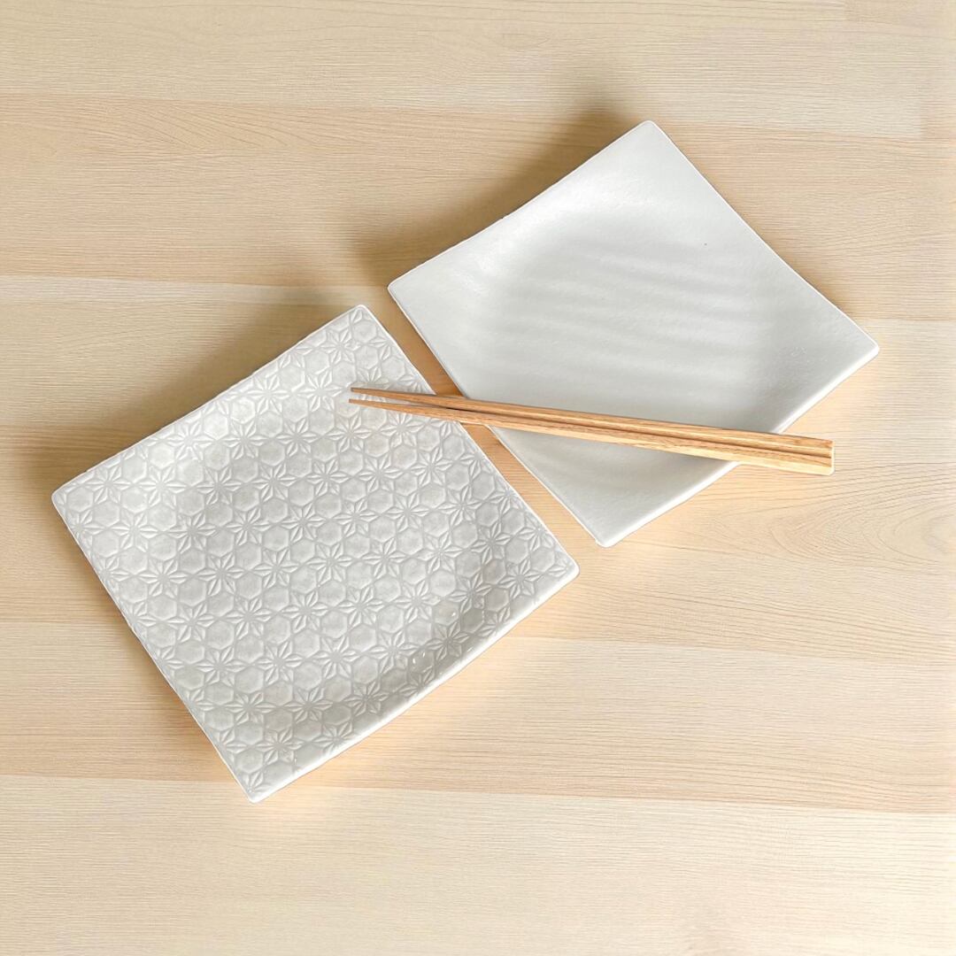 2枚セット 現代和食器 美濃焼 スクエアプレート 正方形 凹凸有