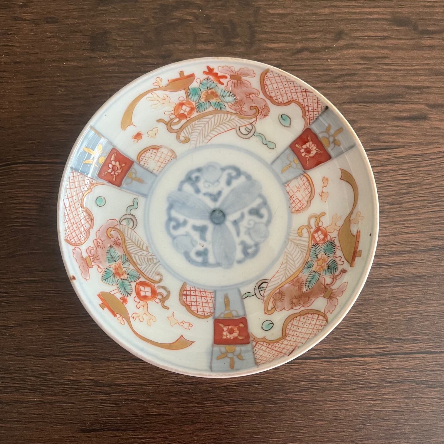 <バラ売り>直径12cm 伊万里赤絵花宝尽絞紋様小皿1枚