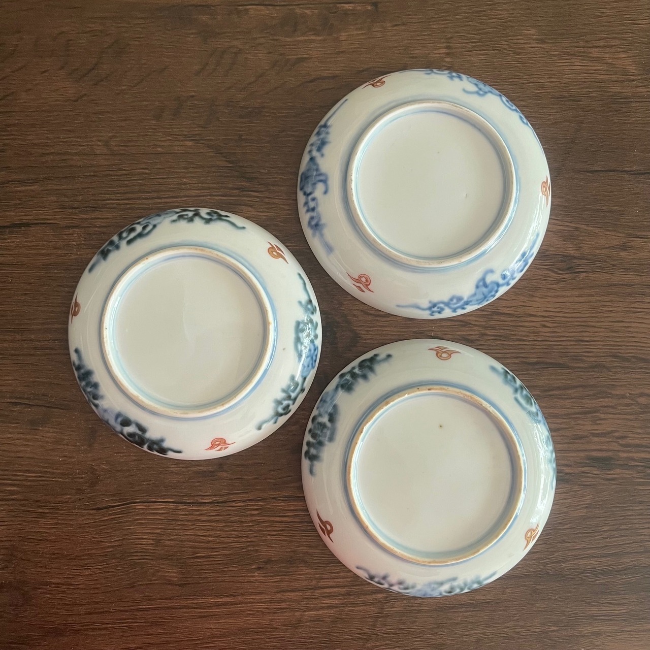 <バラ売り>直径12.5cm 伊万里赤絵鷺絞紋様小皿1枚