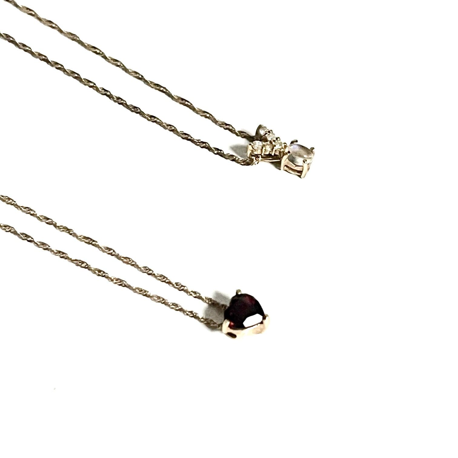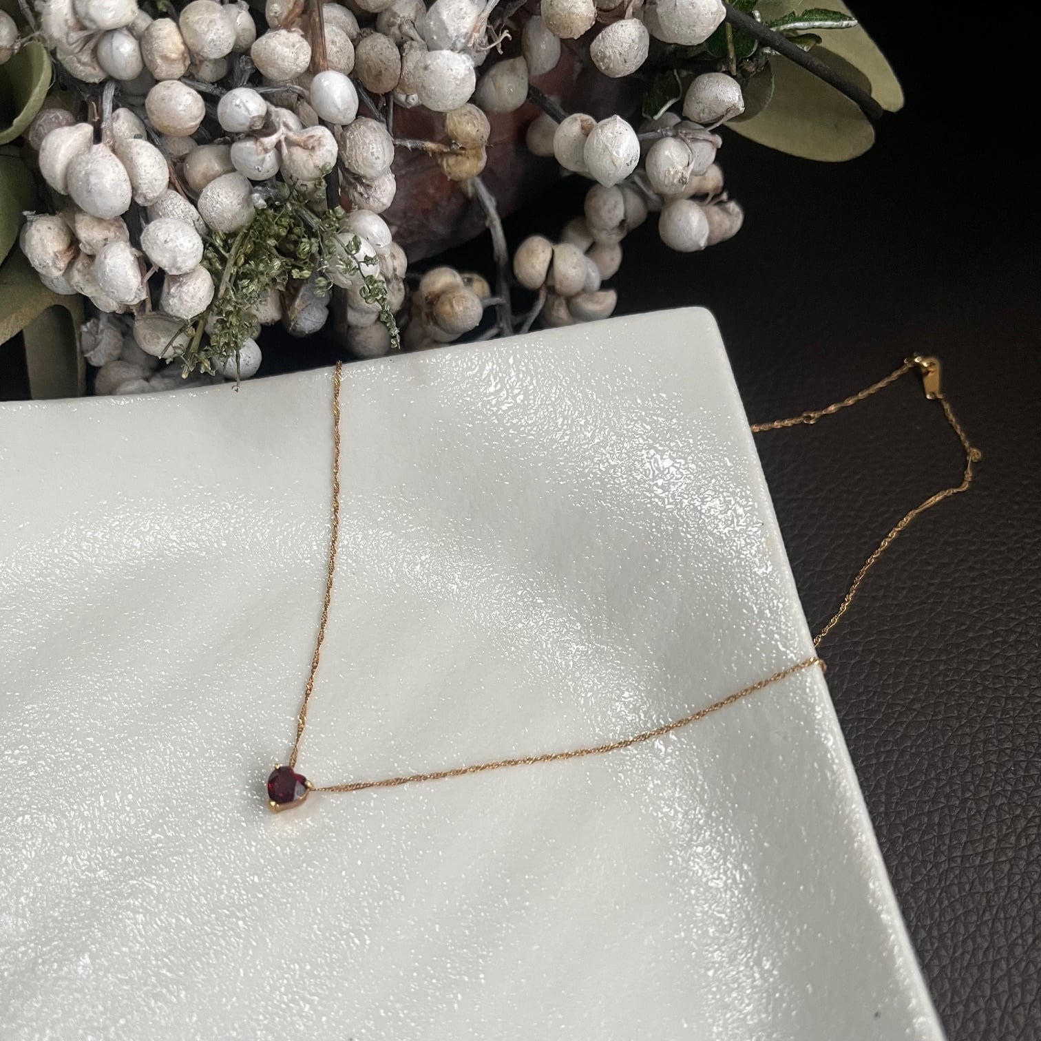 極細チェーンに極小ガーネットが気兼ねなく身につけられる小さなオシャレアイテムです。
