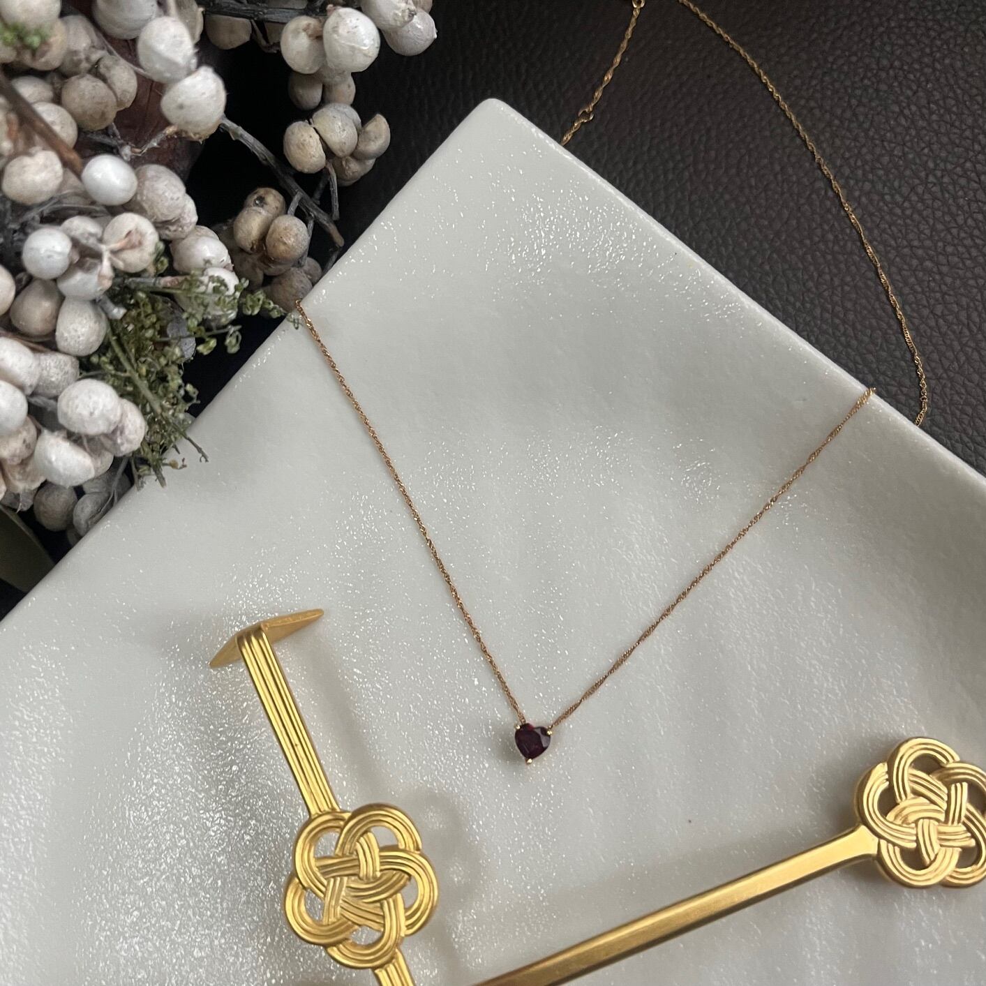 K18 ガーネット ハート型 純金 極細チェーン ネックレス アンティークジュエリー