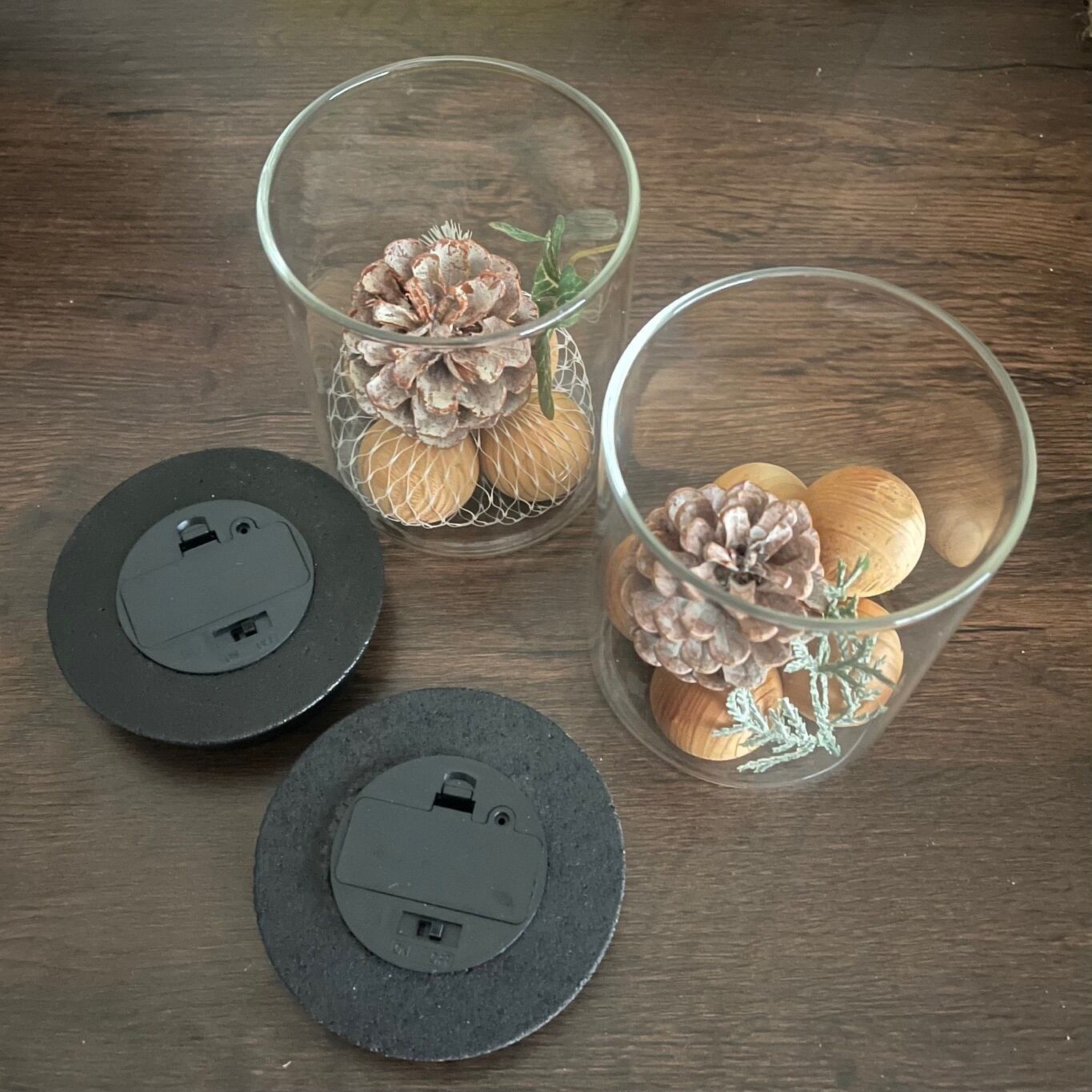 【LEDライト付き】Glass Winter Forest〈S〉檜と松ぼっくりの灯り