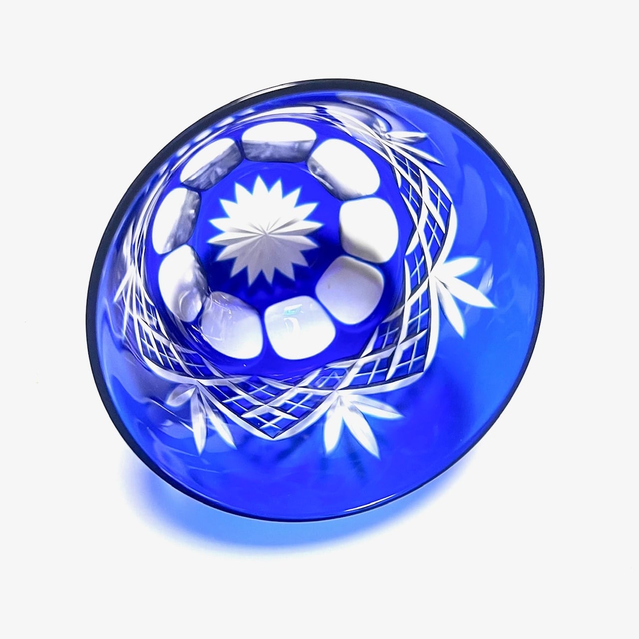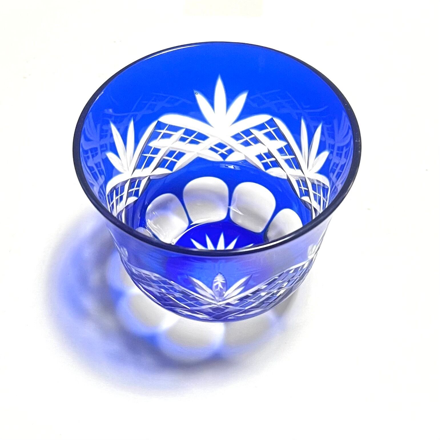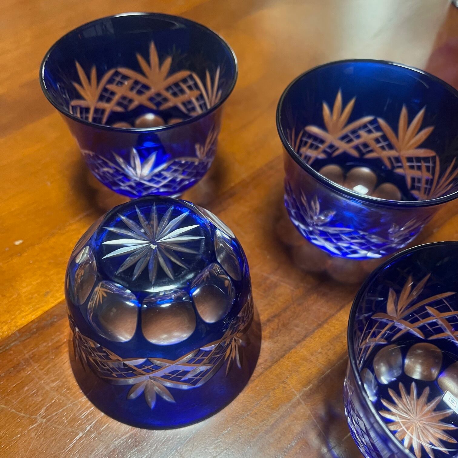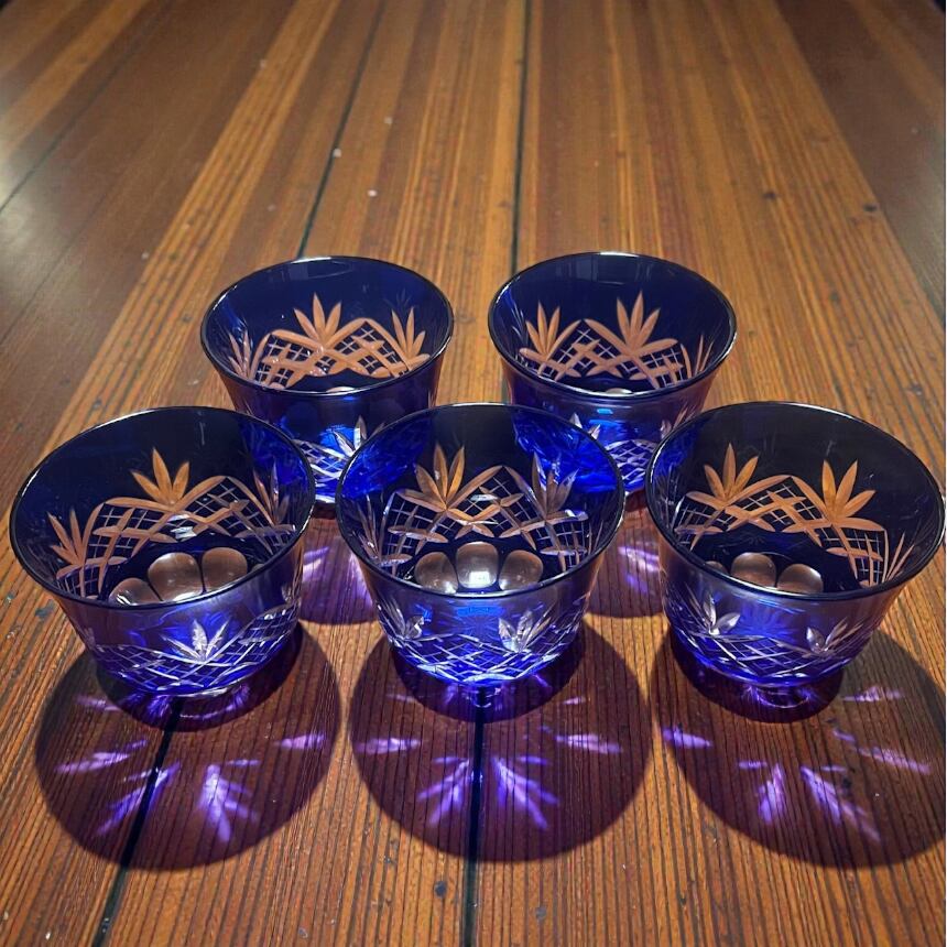 青 切子ガラス 冷茶グラス5客セット 向付としてもお使いいただけます
