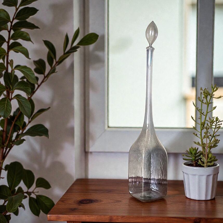 香水瓶を思わせる細長いフォルムは、実用品としてではなく、空間を飾るために制作されたデザイン作品。