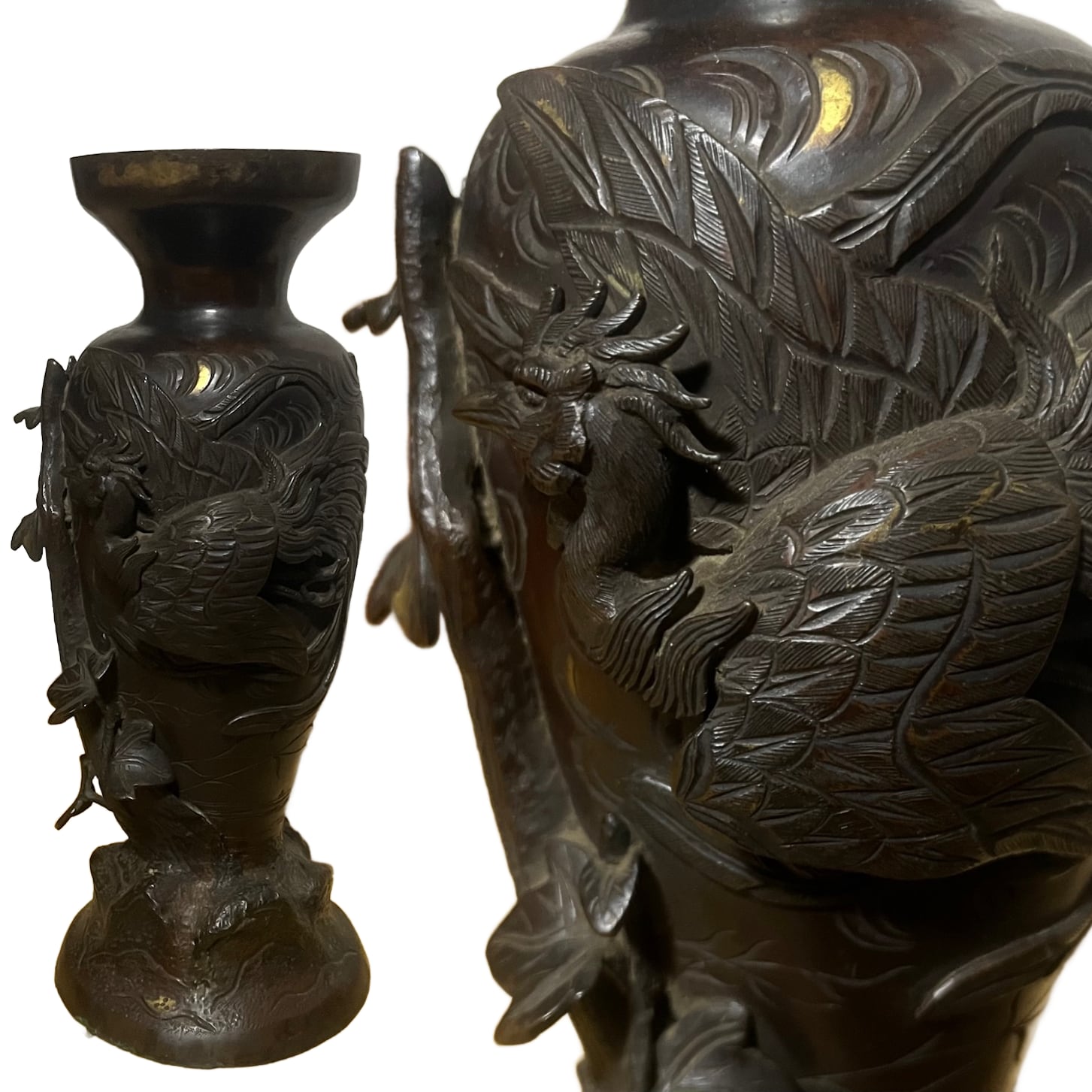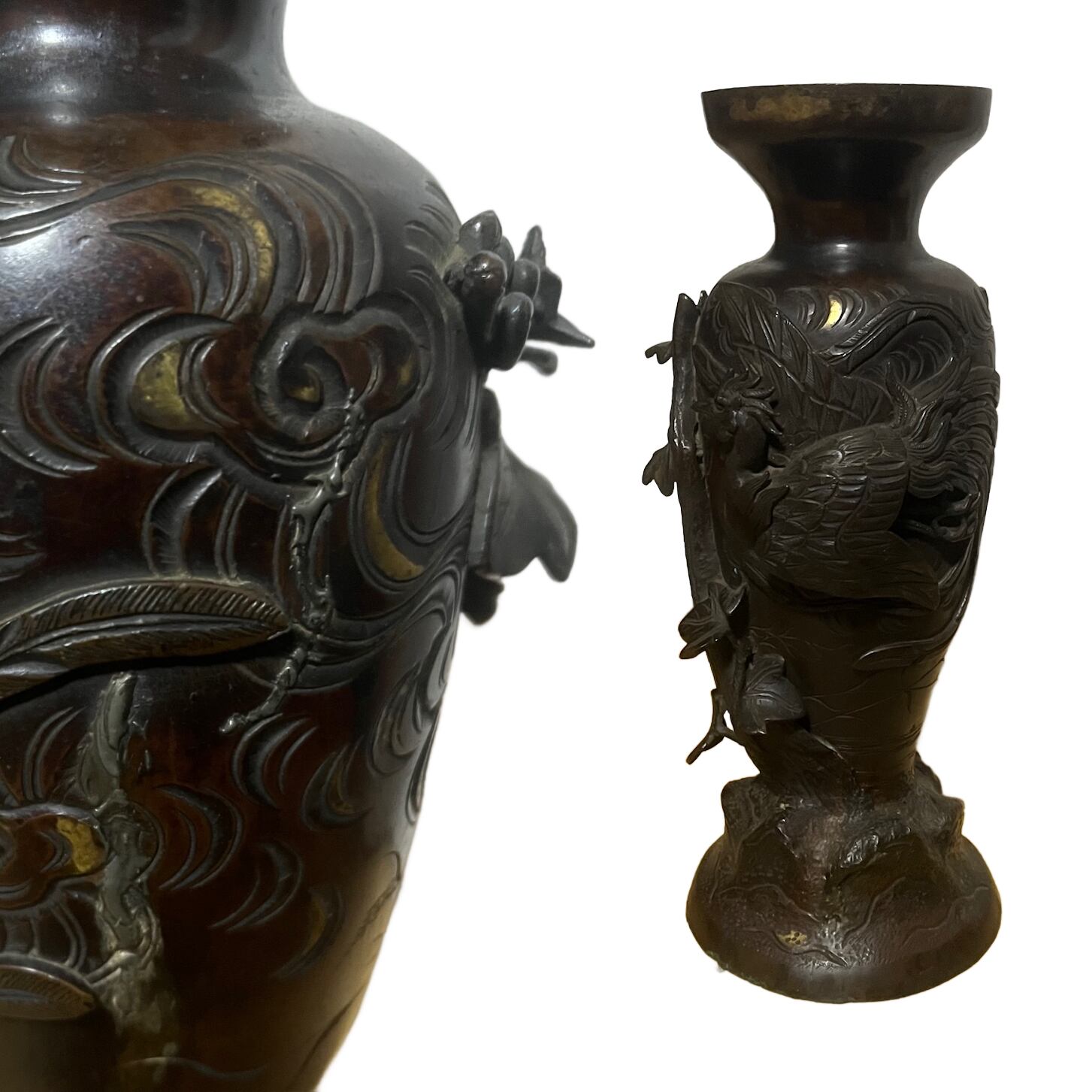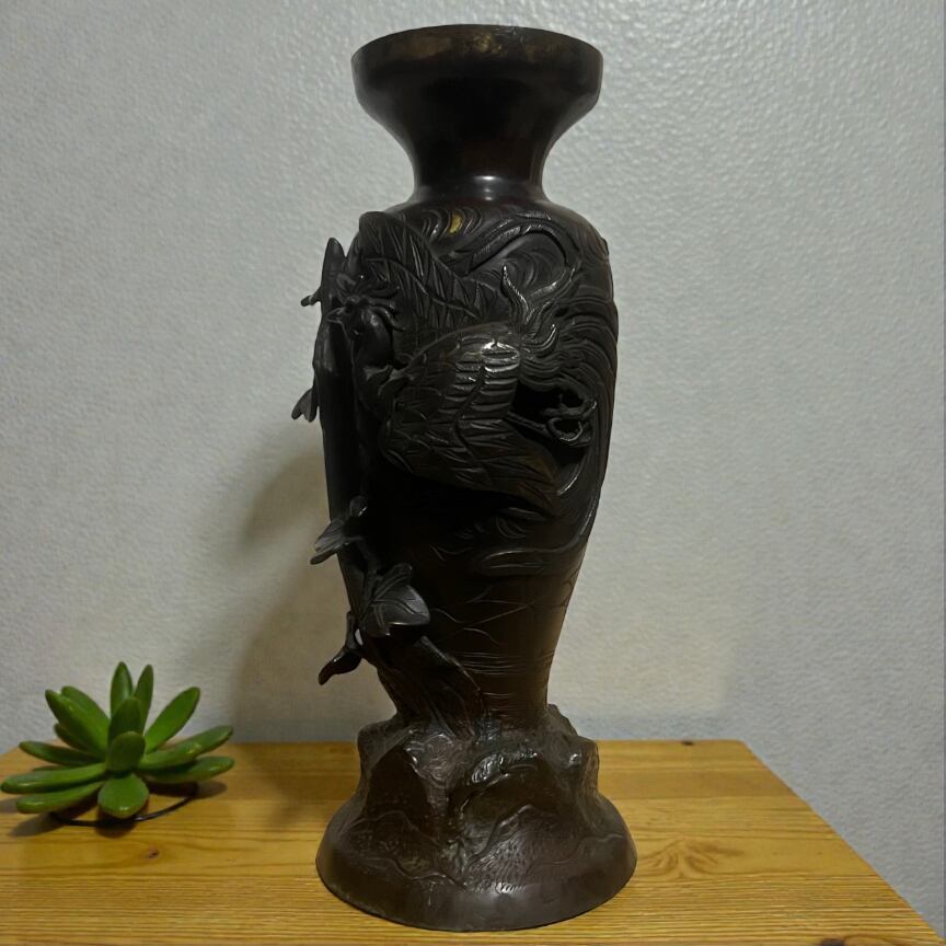 【明治期・銅製】鳳凰花器