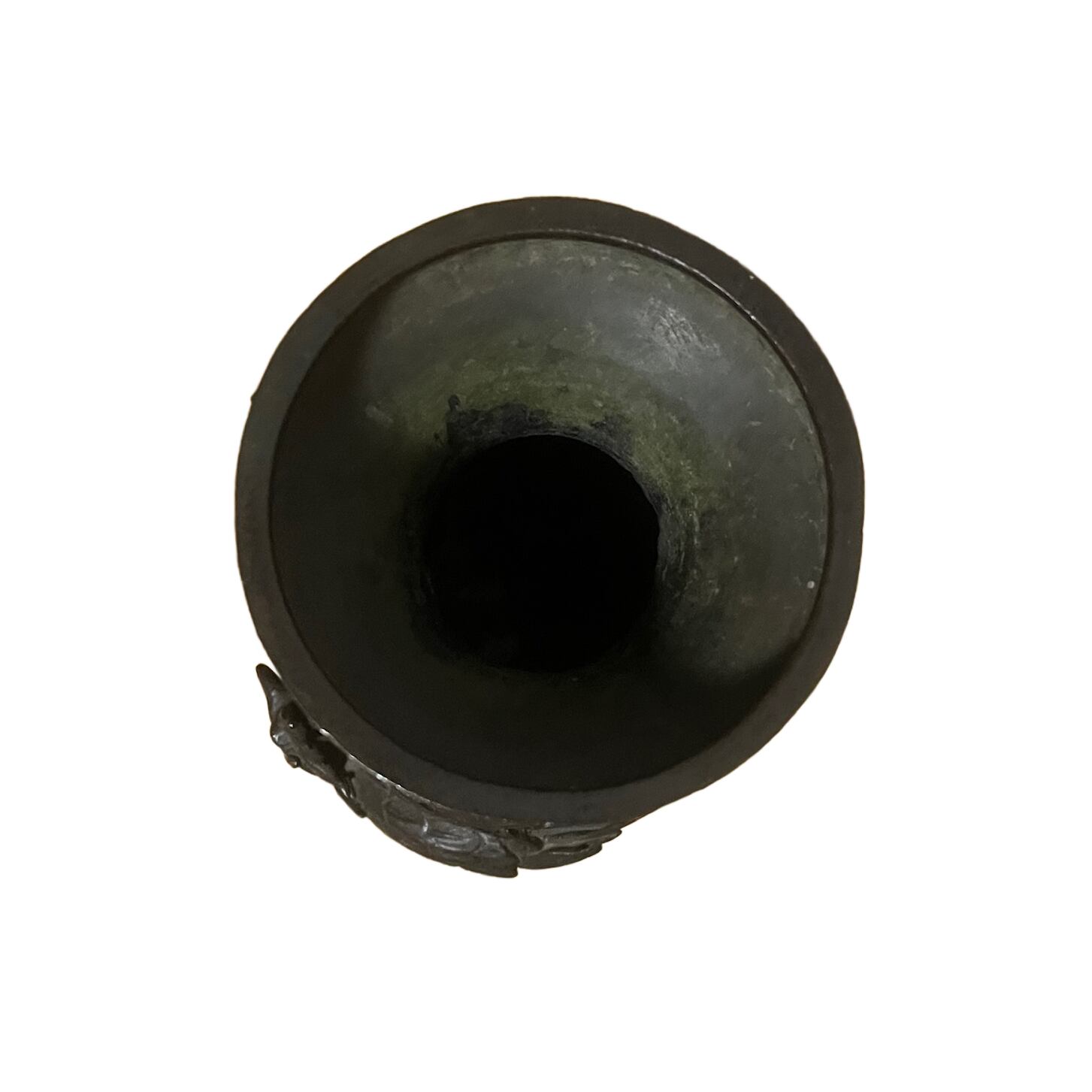 実際に水を入れた様子が分かるのが底の裏部分に緑青がほんのりと浮かび上がっております。