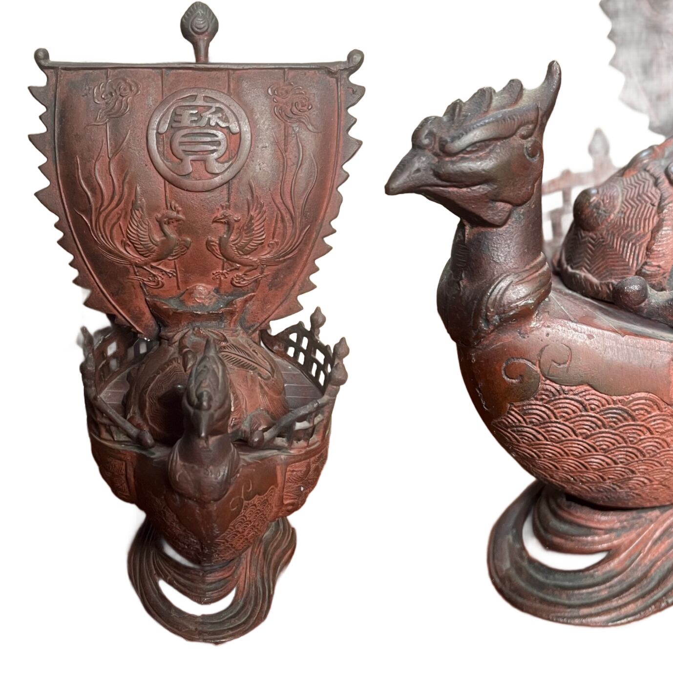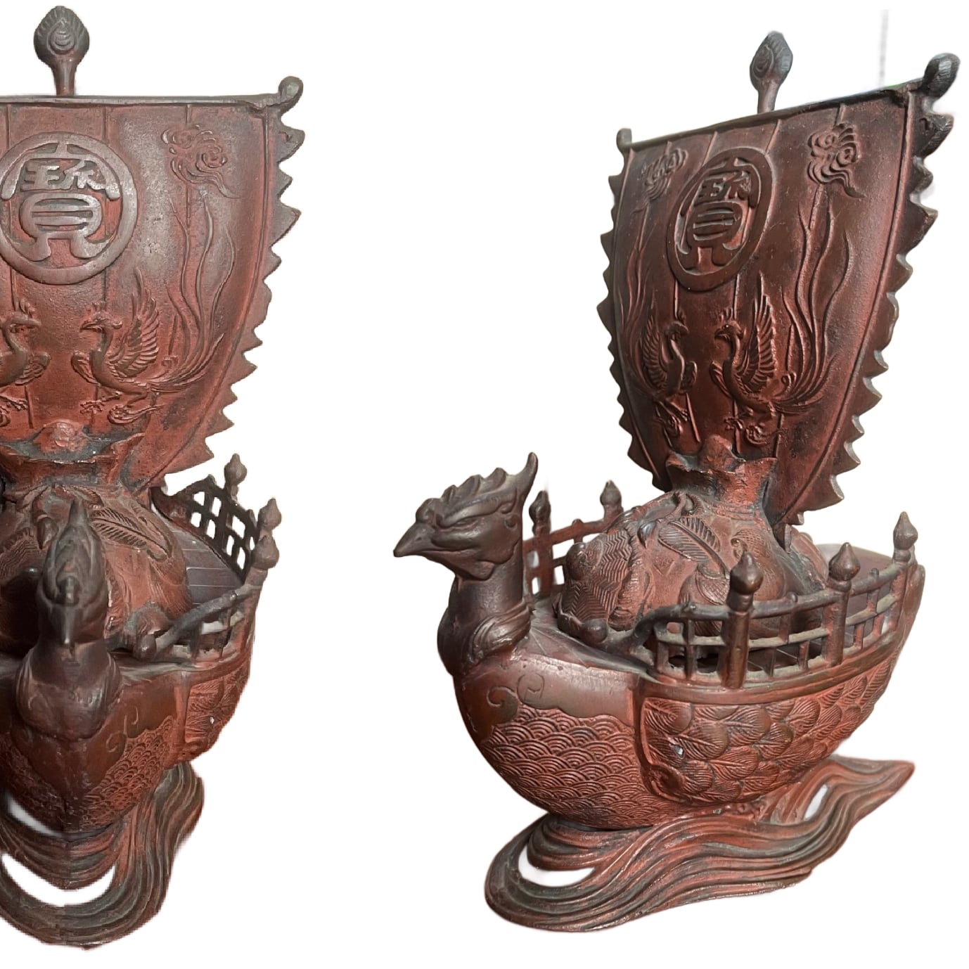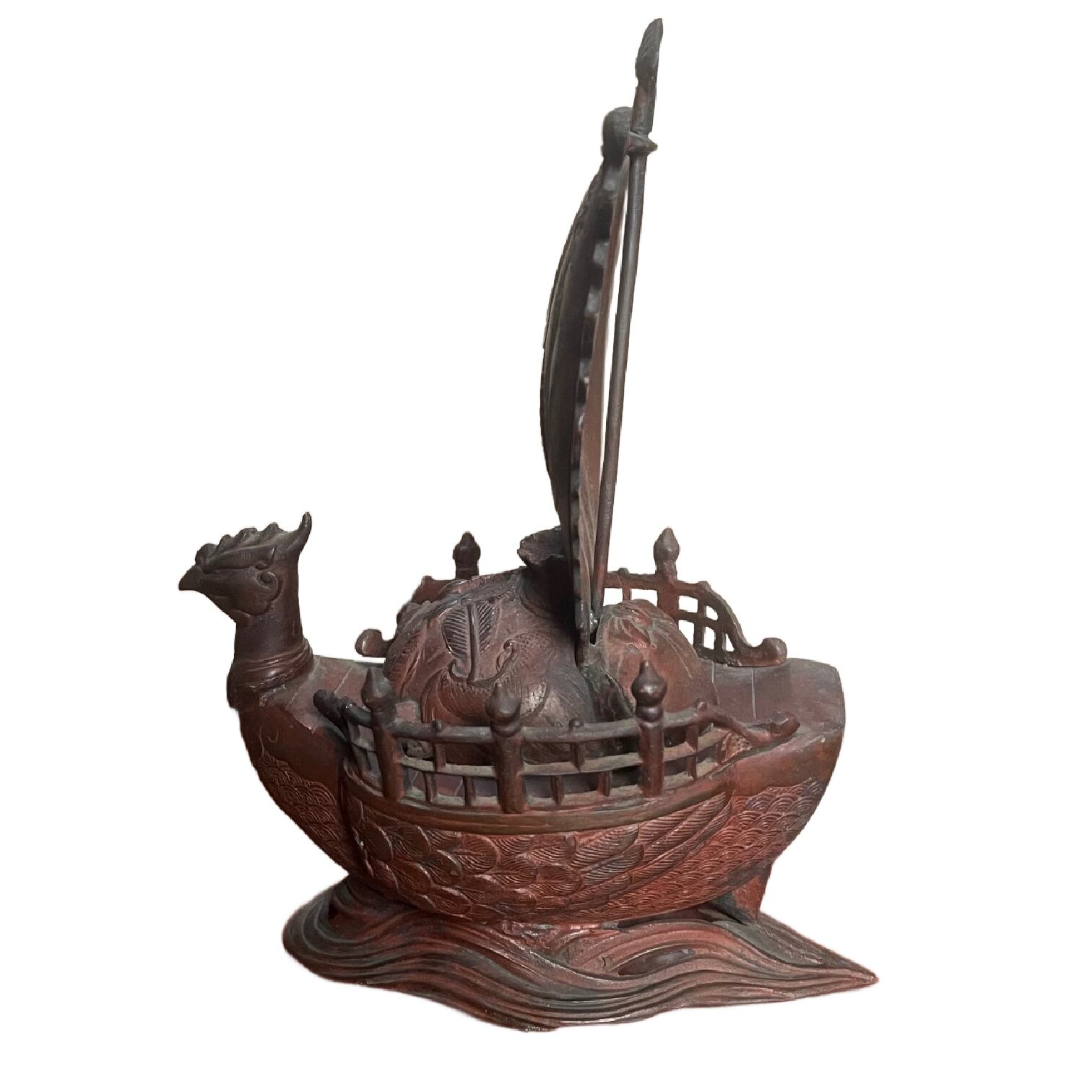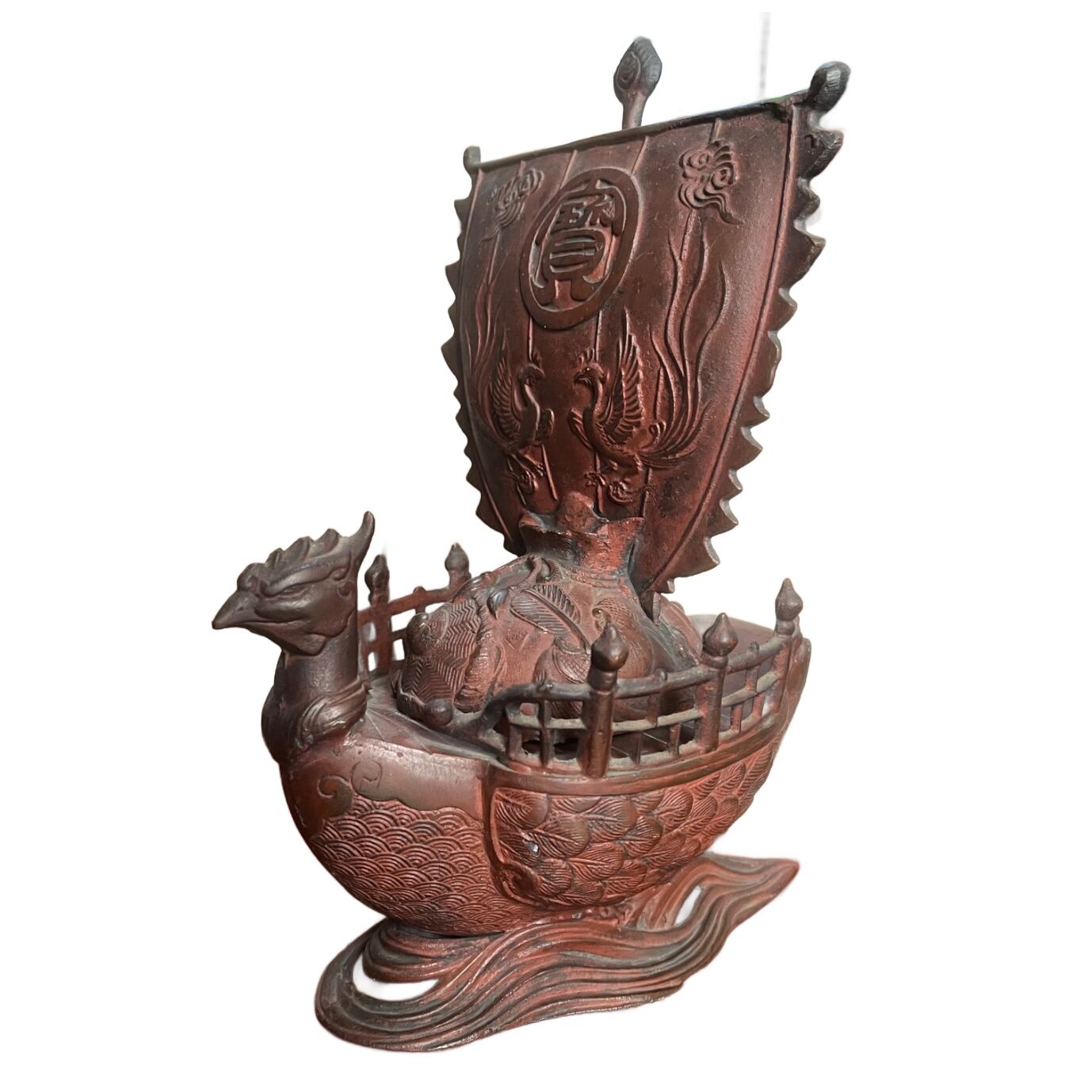 銅製 鳳凰宝船 香炉