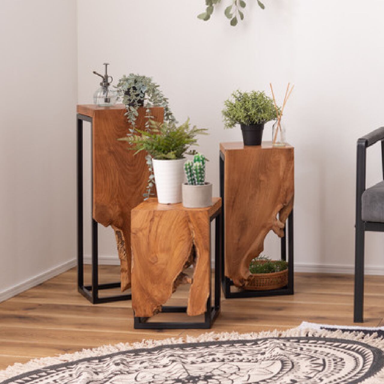 ■素材:天然木(チーク)/スチール(粉体塗装)