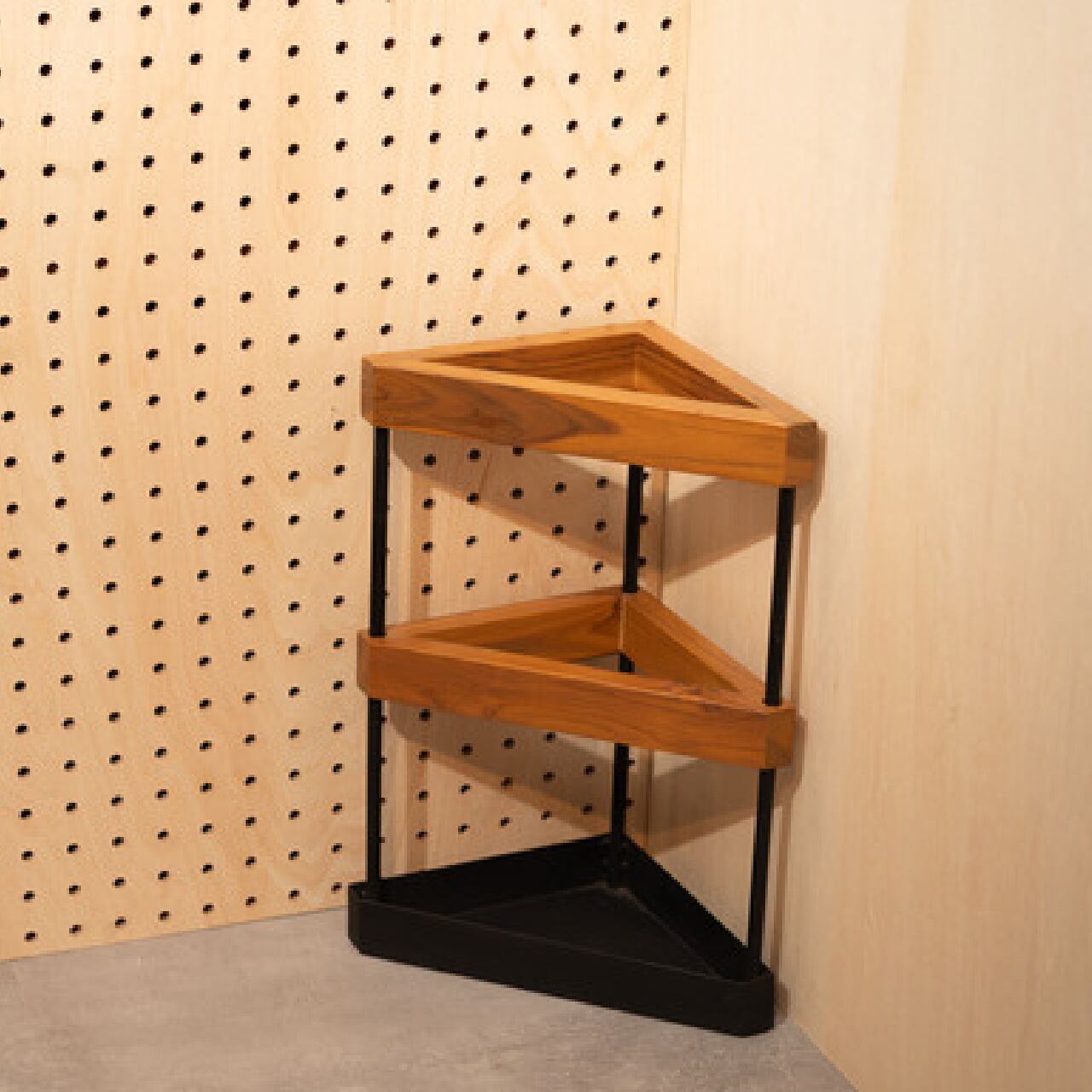 壁のコーナーに自然と収まる、計算されたフォルム。