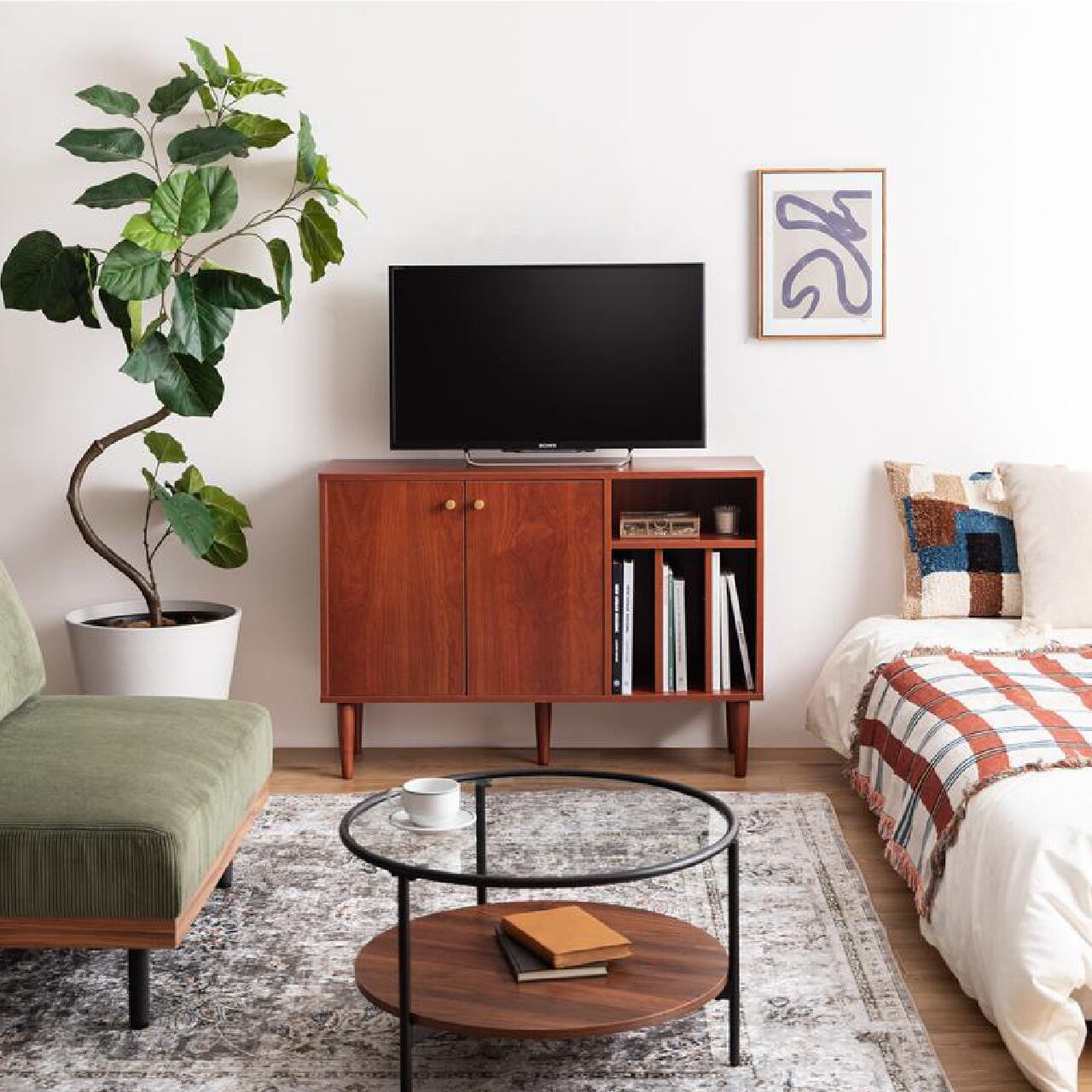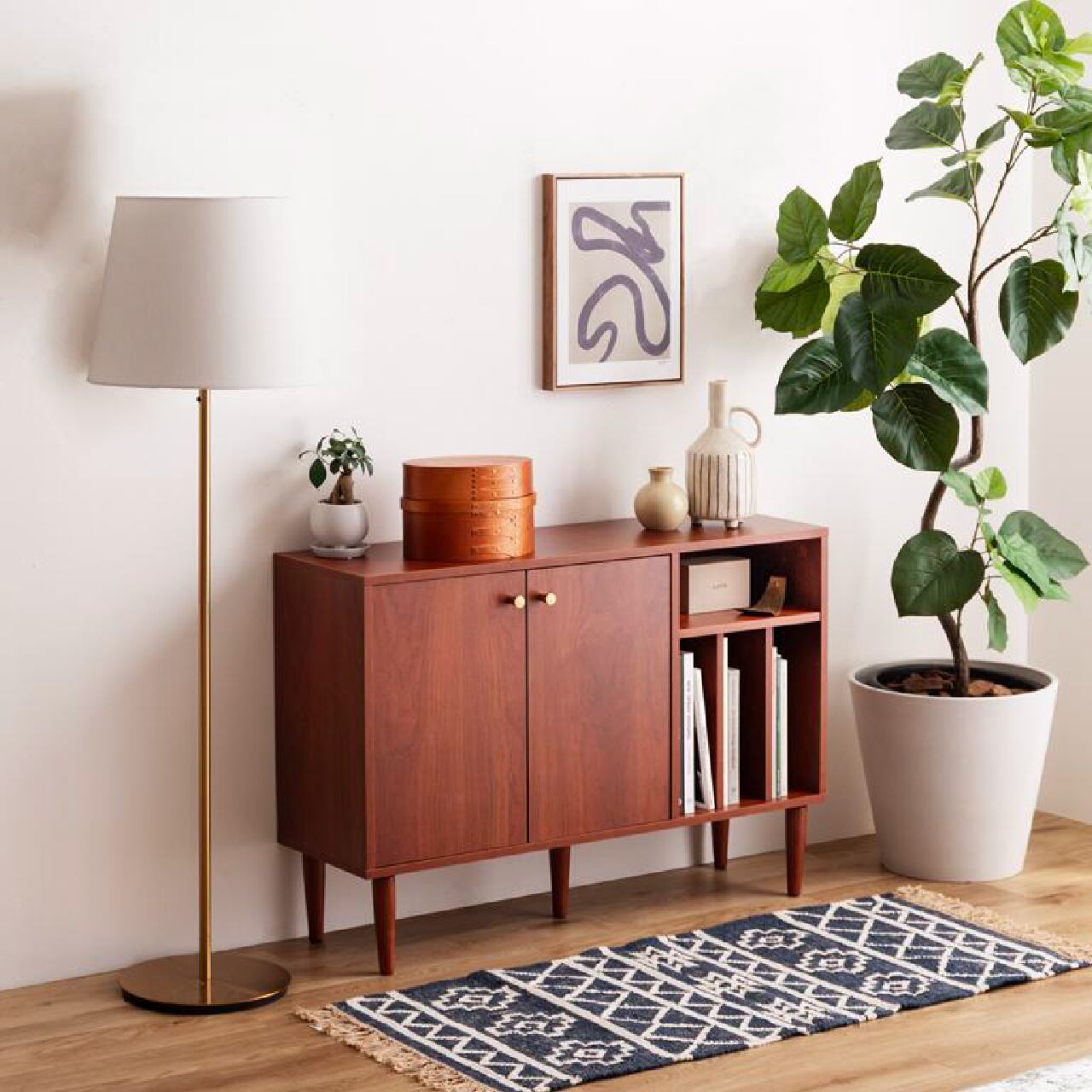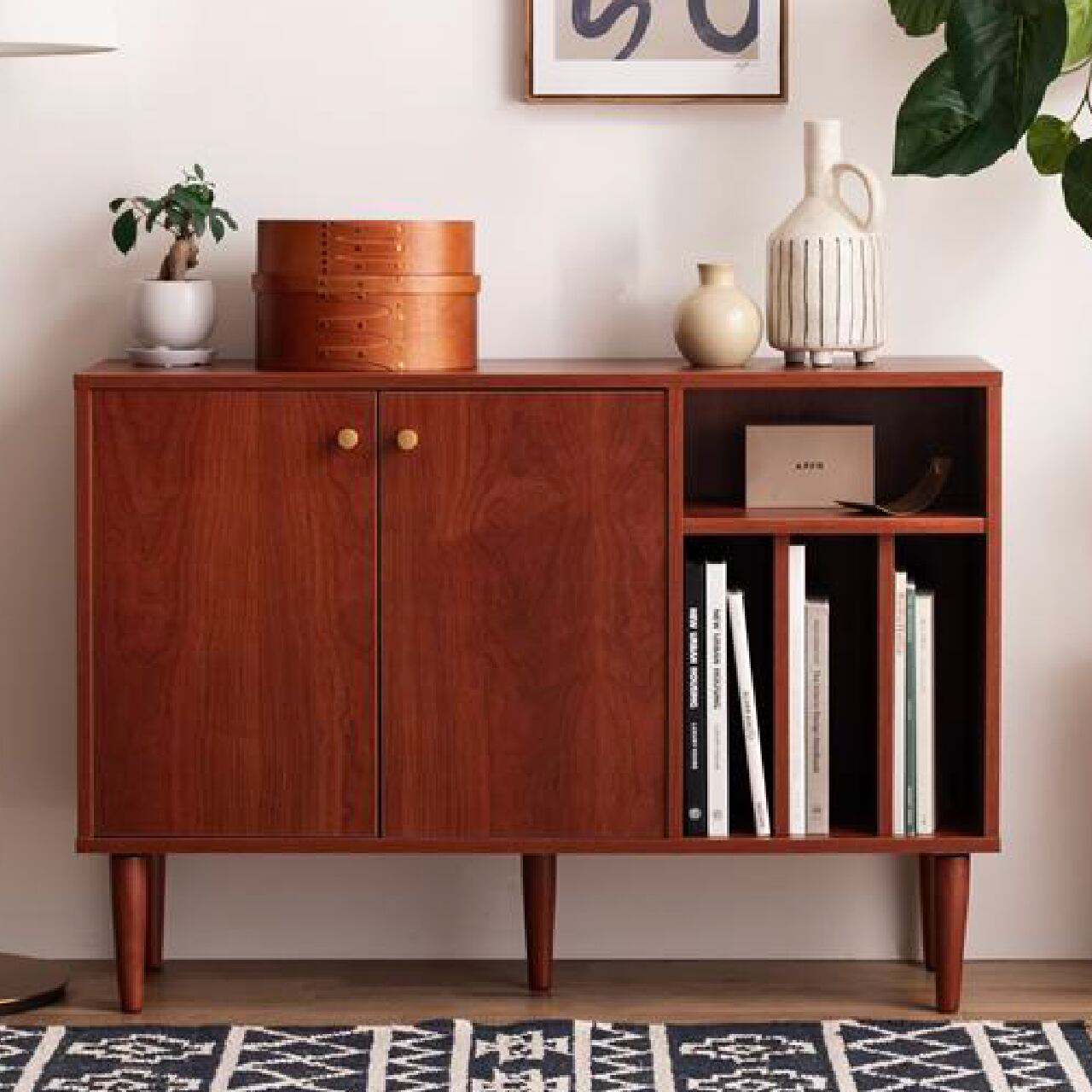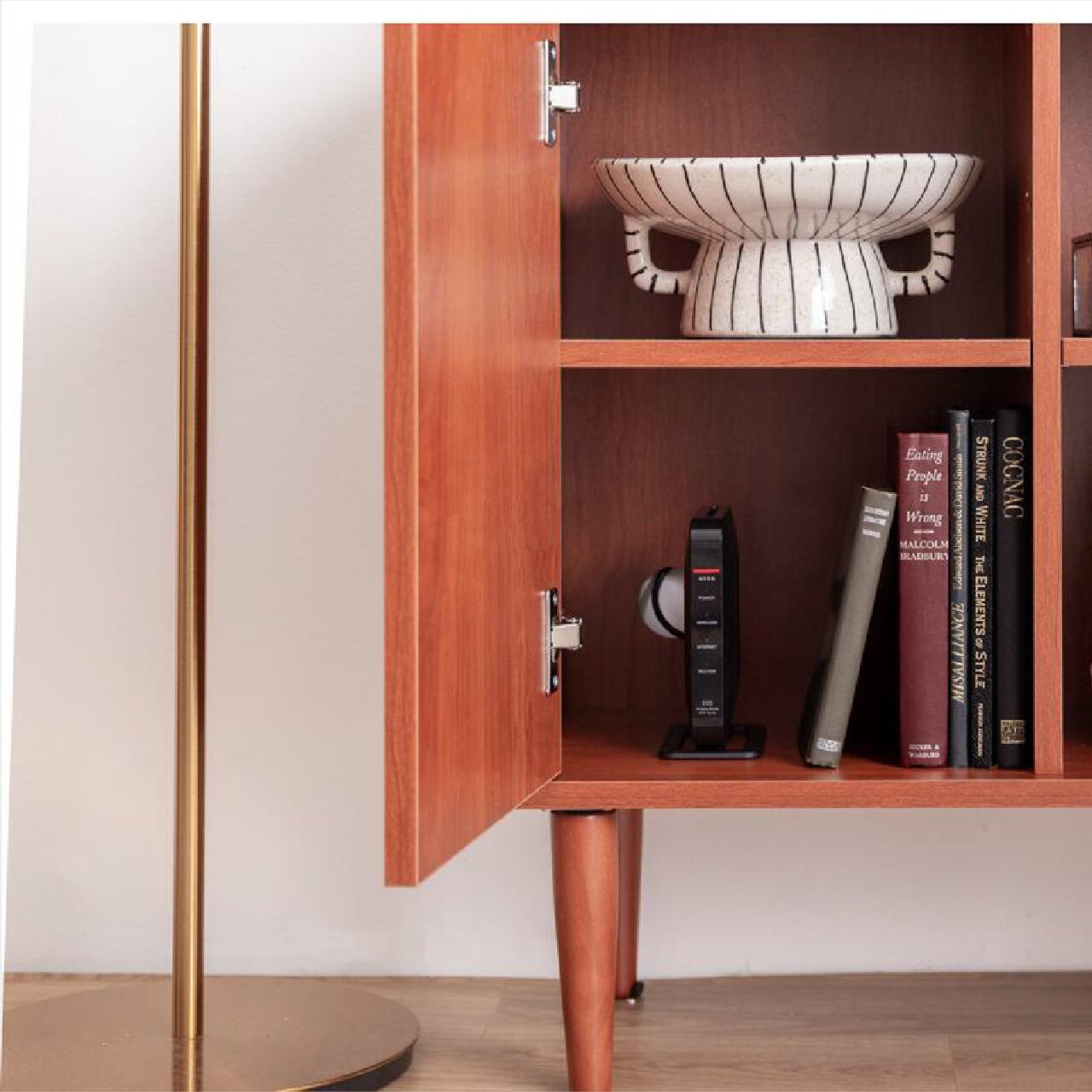 本棚付きで整理整頓しやすい幅100cmの北欧スタイルキャビネットです。