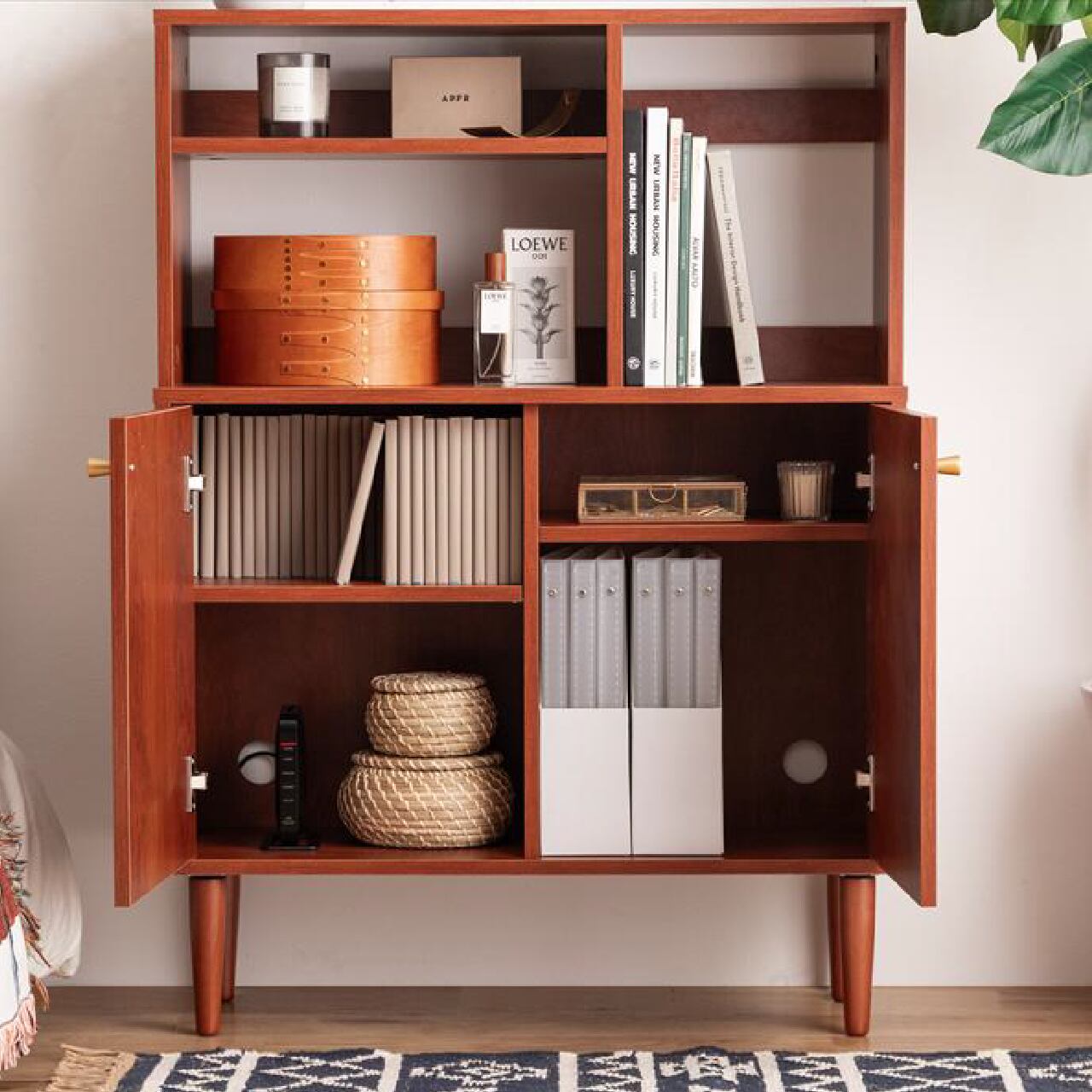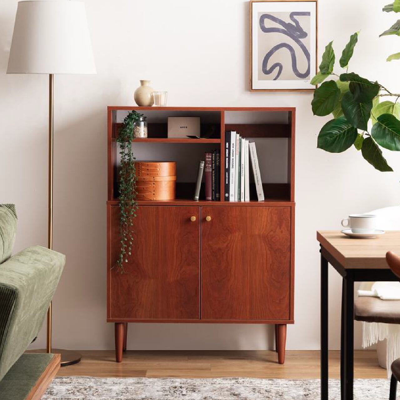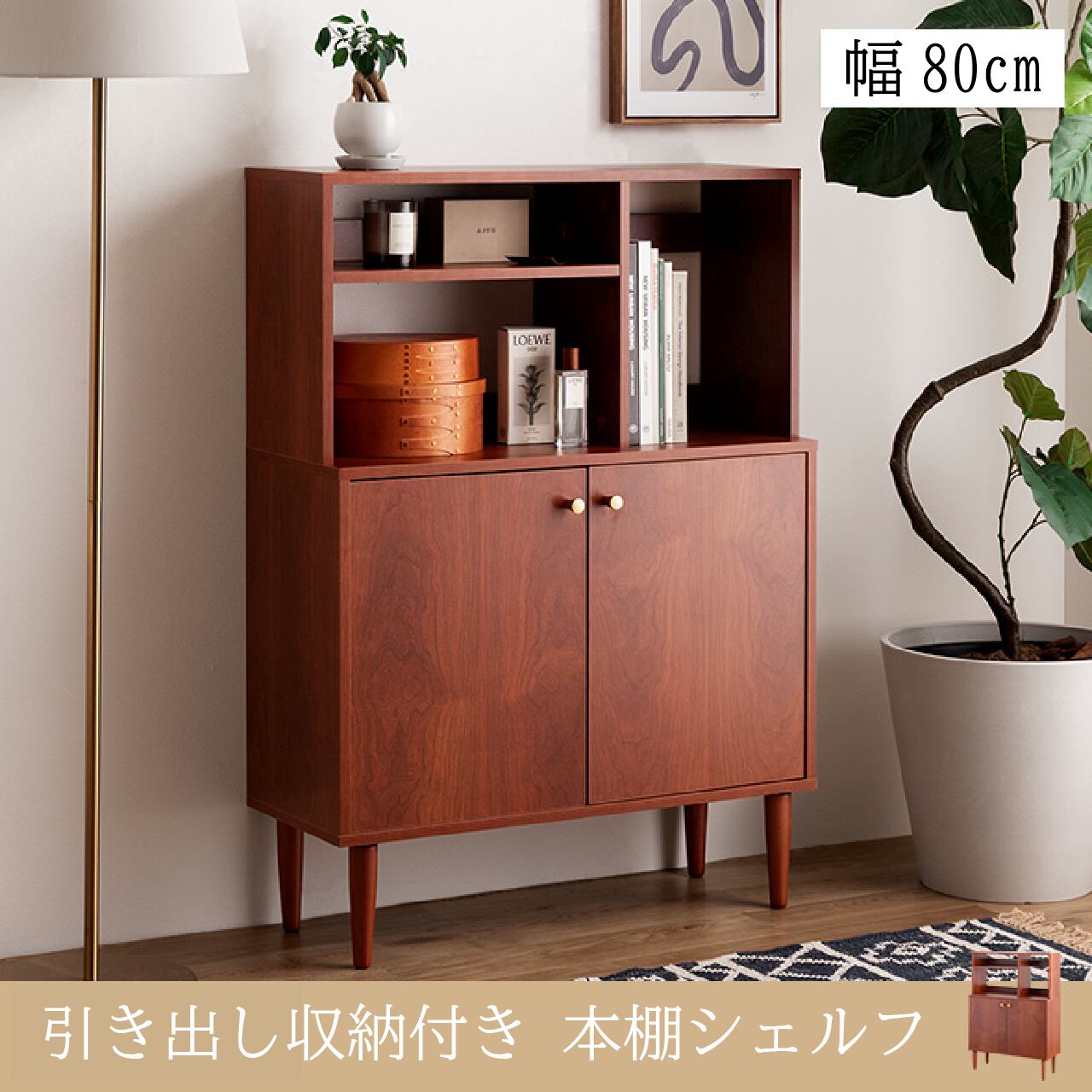 オープン棚付きで見せる収納にも使える幅80cmの北欧スタイルキャビネットです。