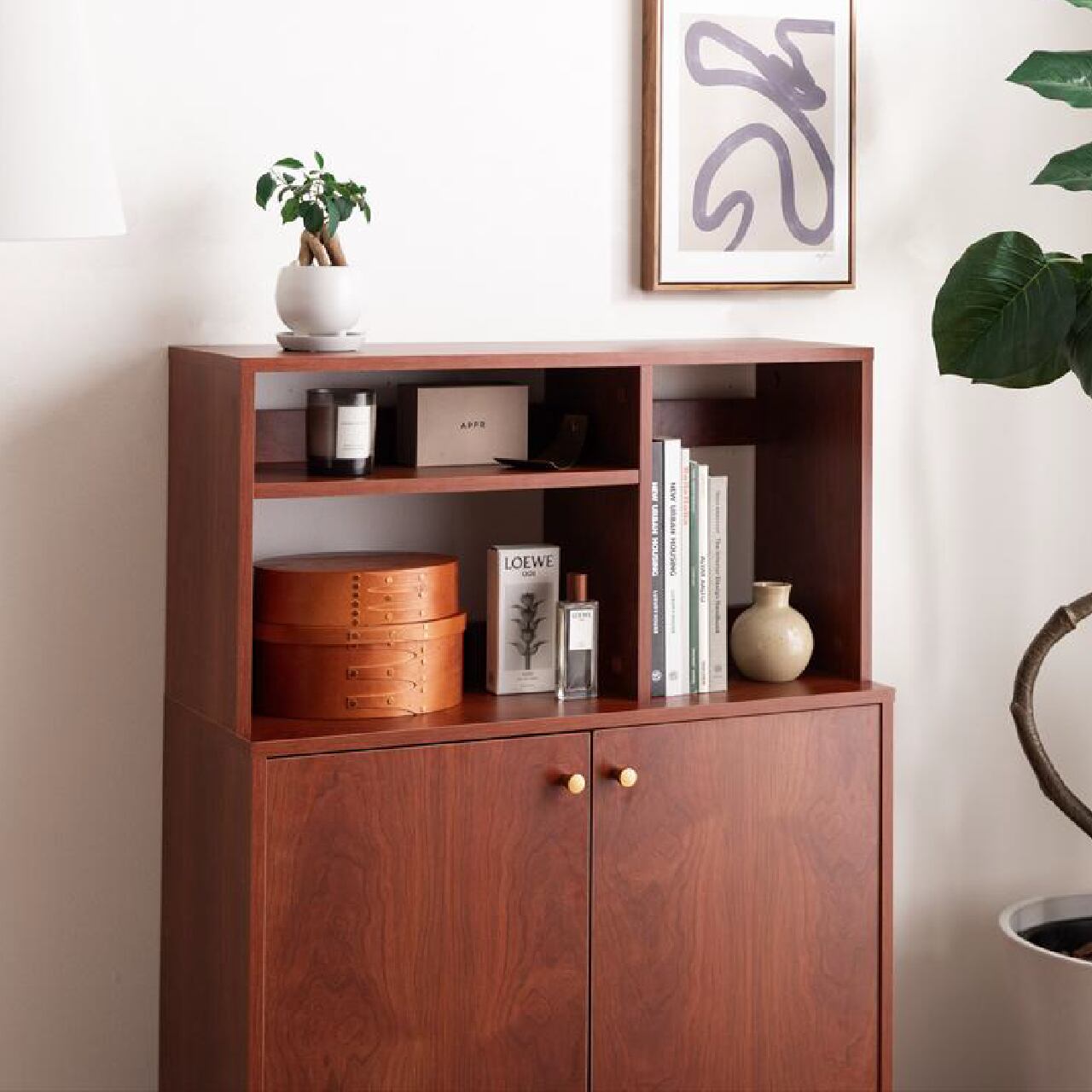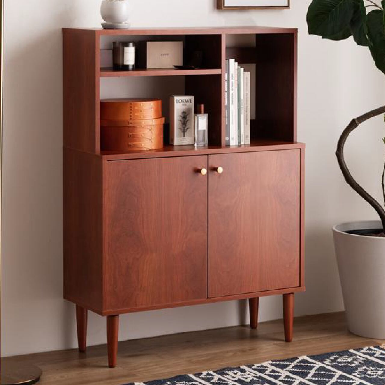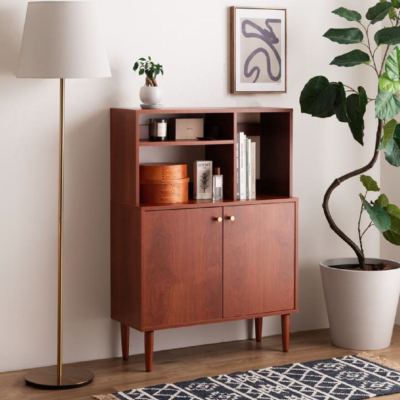 オープン棚付きで見せる収納にも使える幅80cmの北欧スタイルキャビネットです。