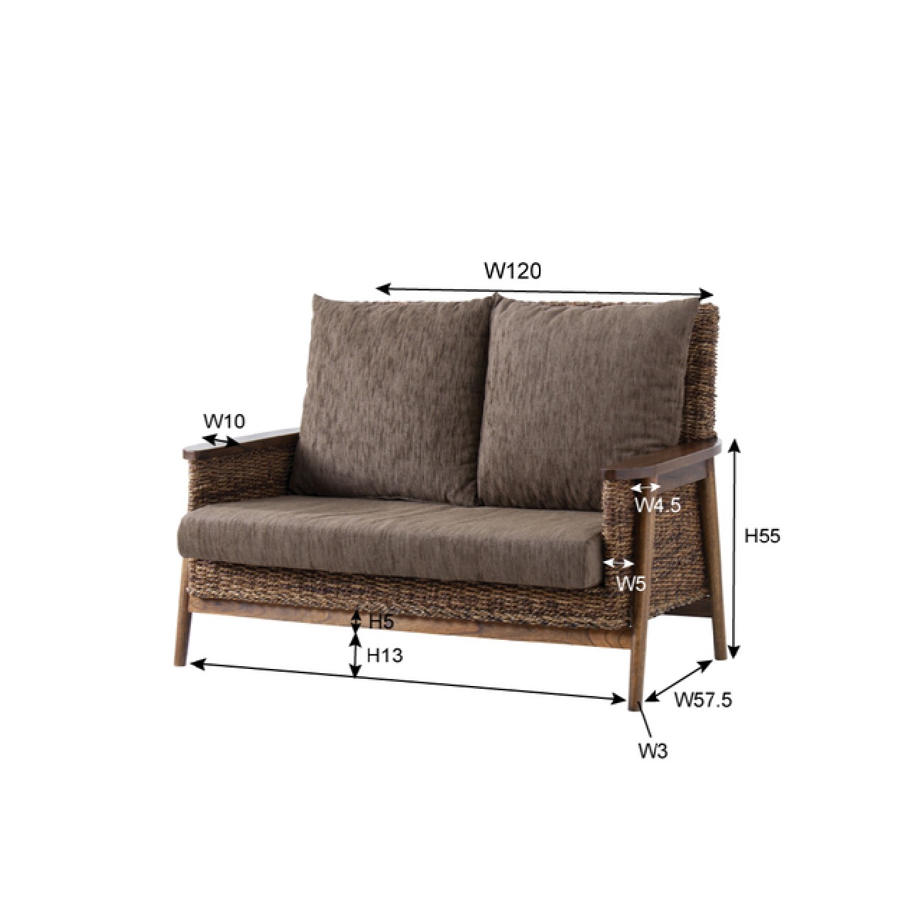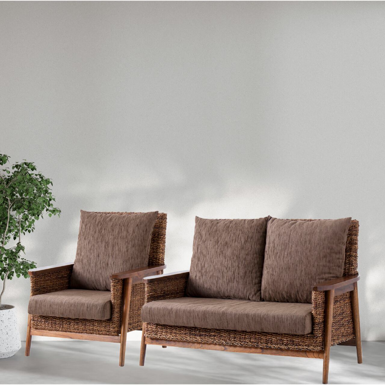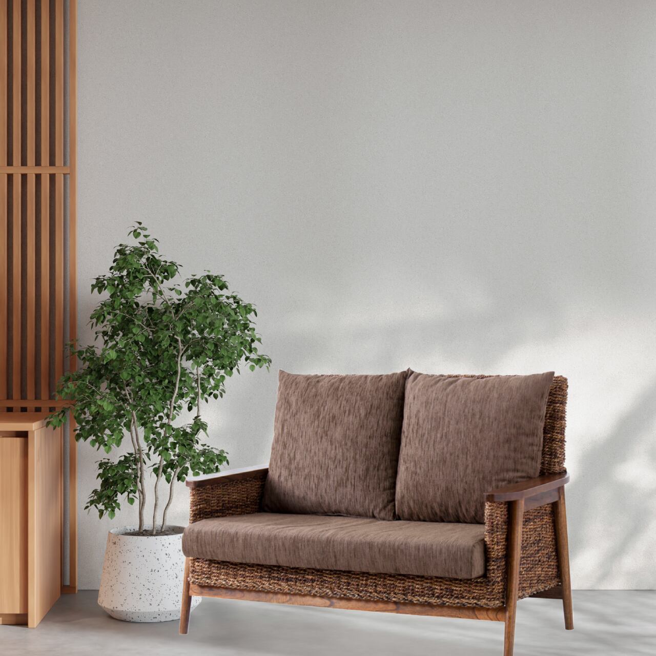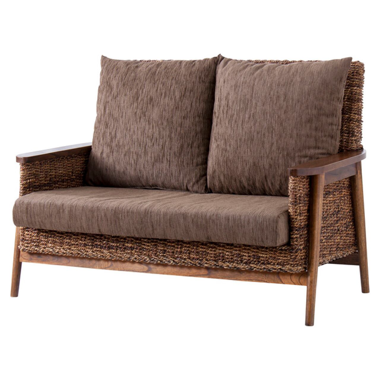 天然素材アバカの編み込みが印象的な、リゾート感あふれる2人掛けソファ。