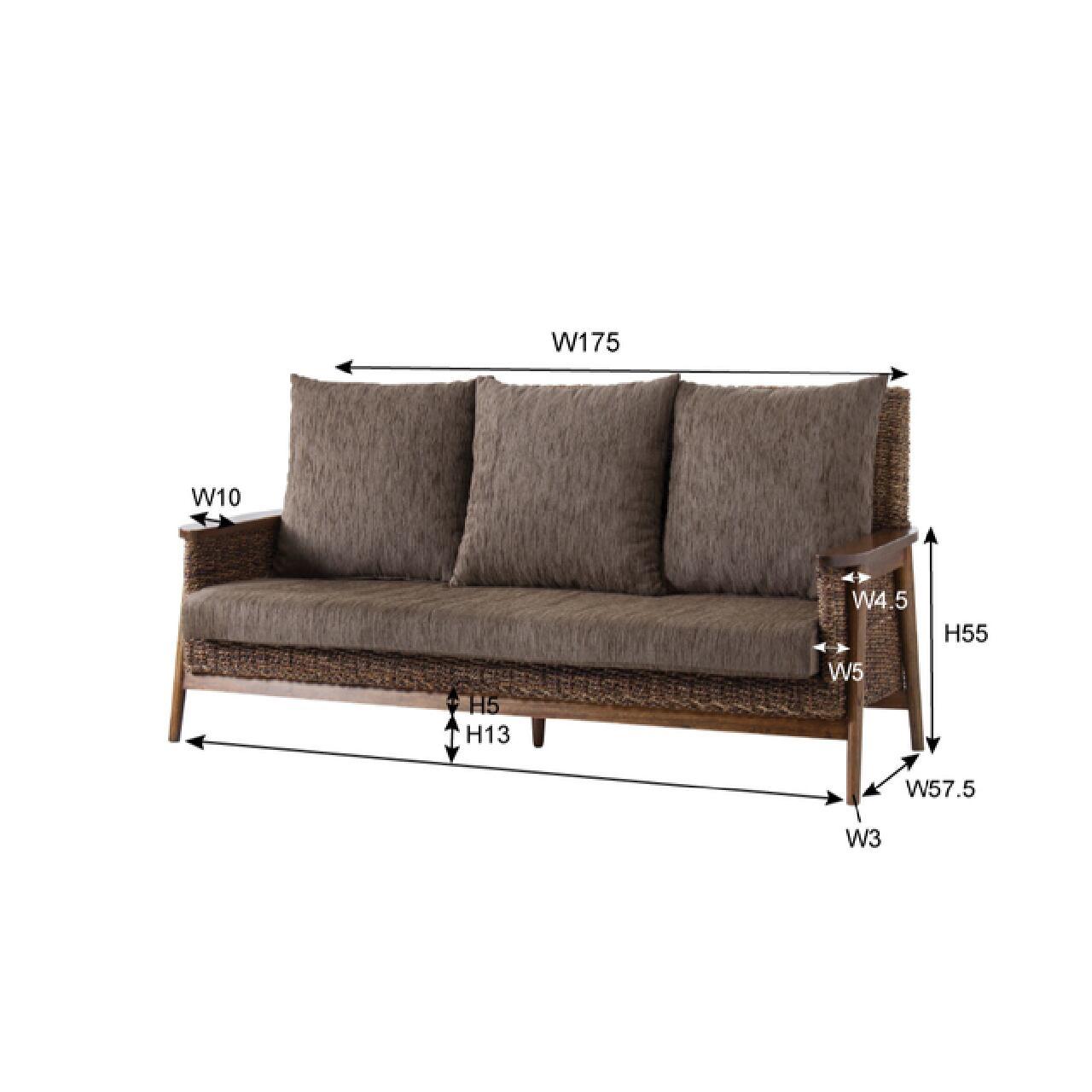 天然素材アバカのリゾートソファ 3人掛け ラウンジソファ 3p