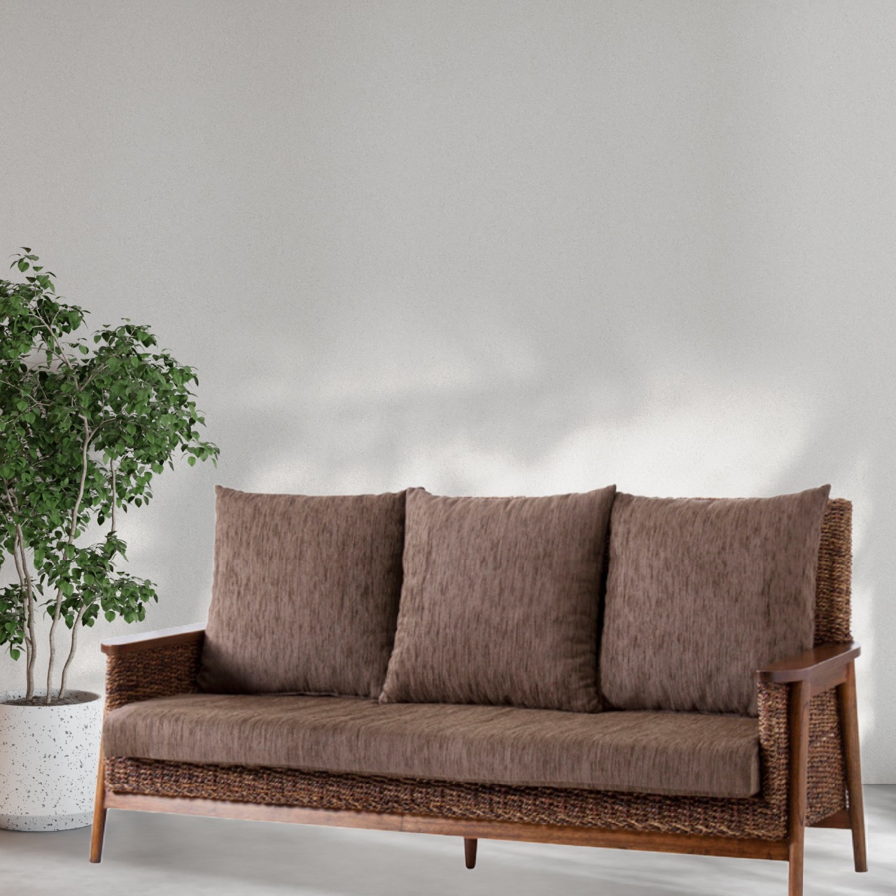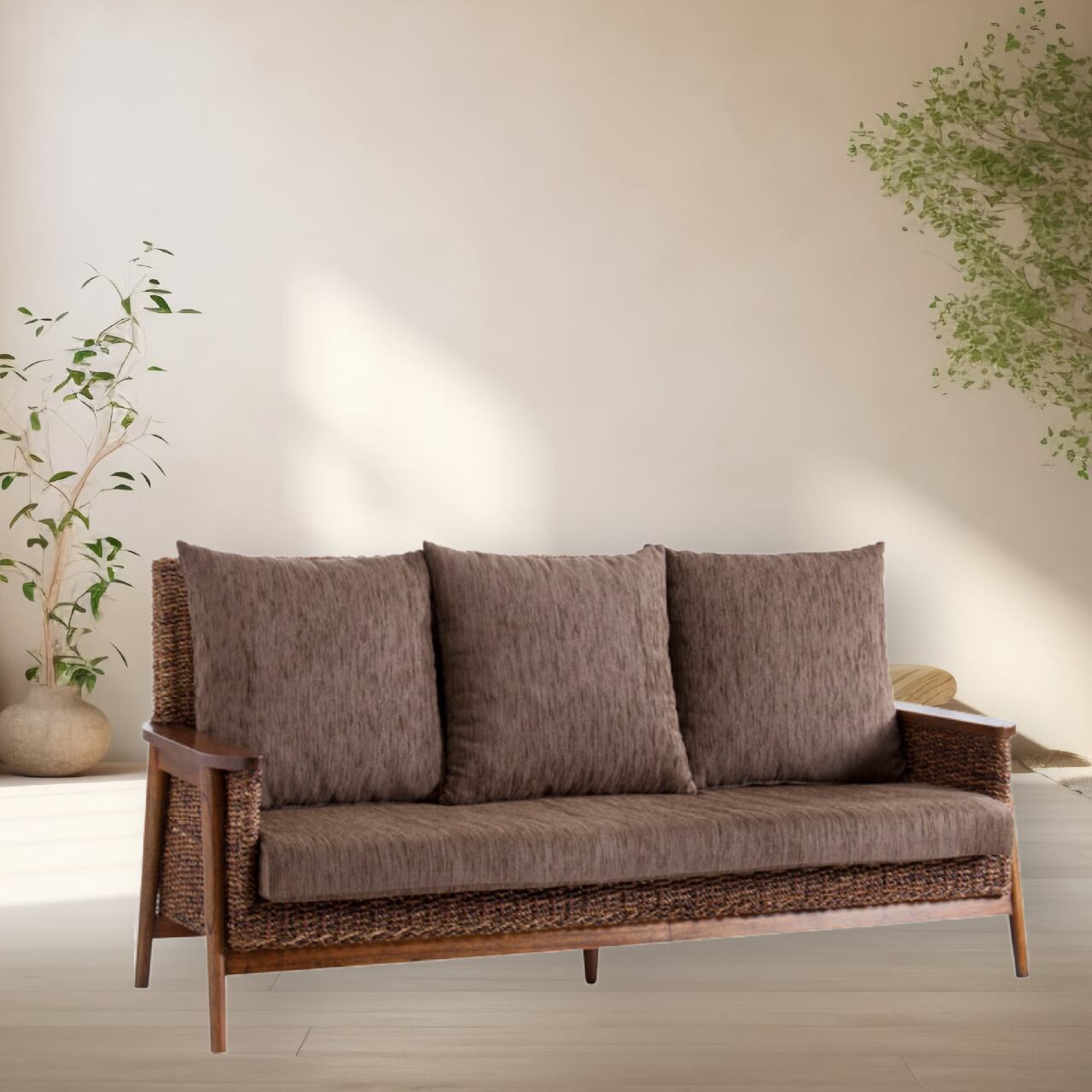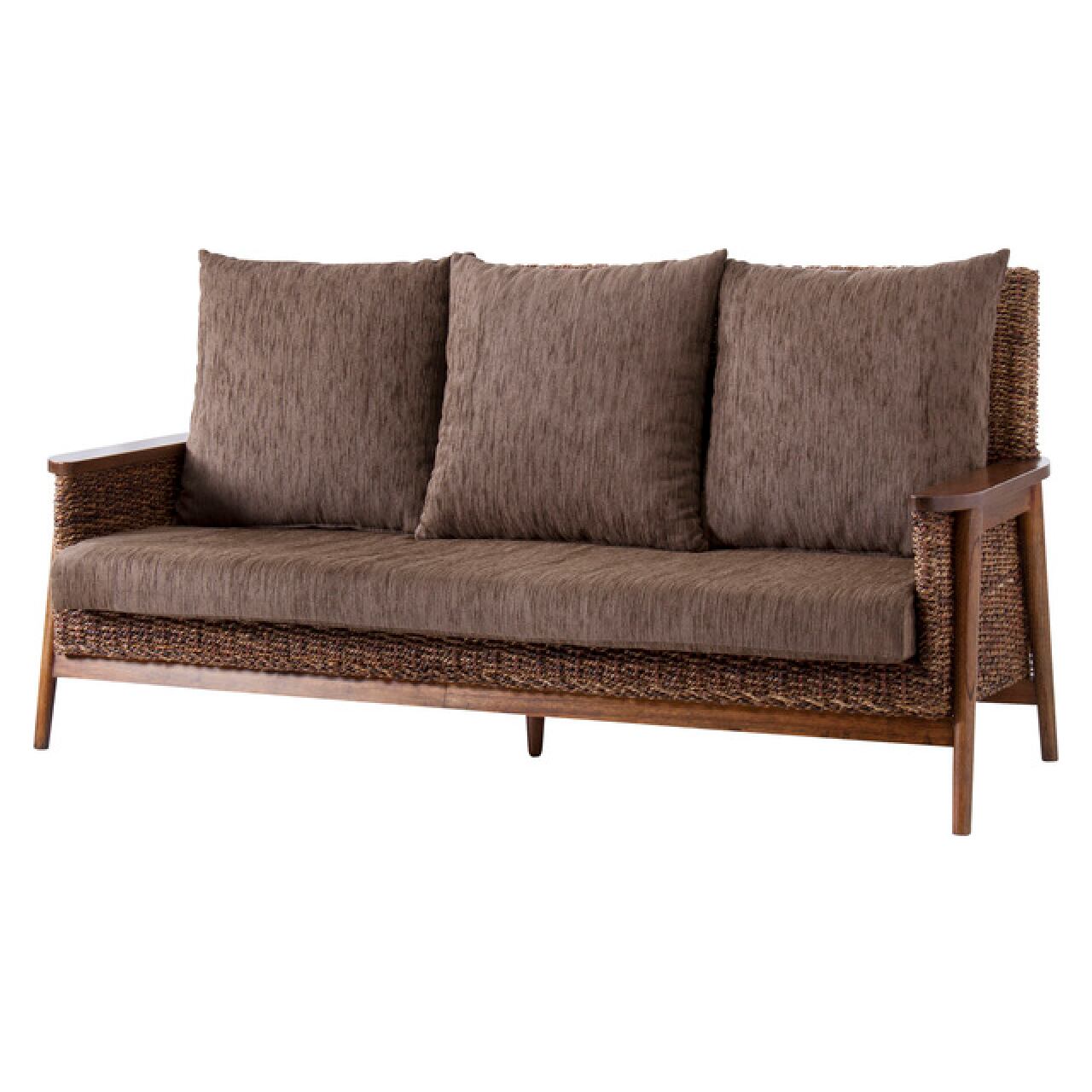 天然素材アバカと木のフレームが美しい、存在感のある3人掛けソファ。