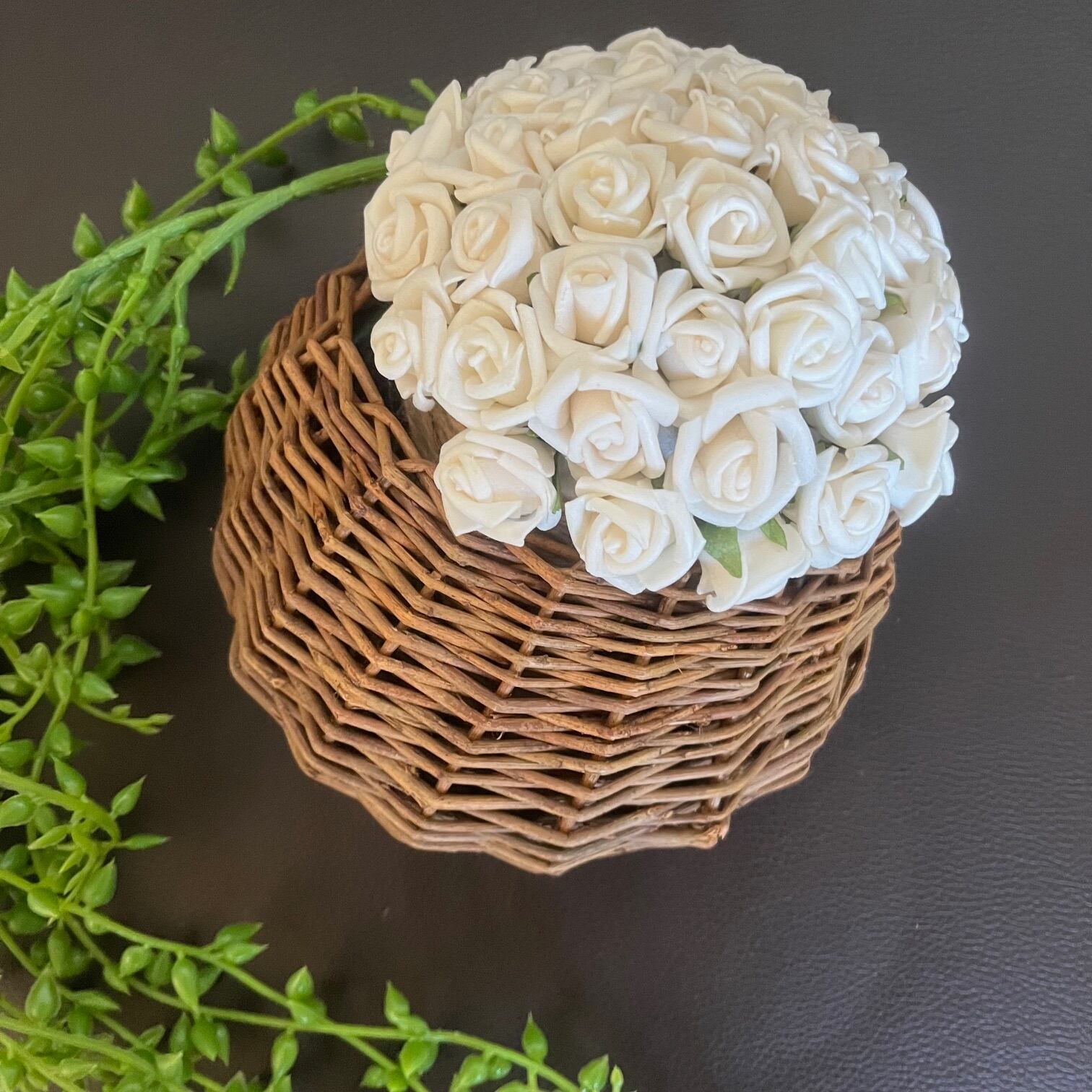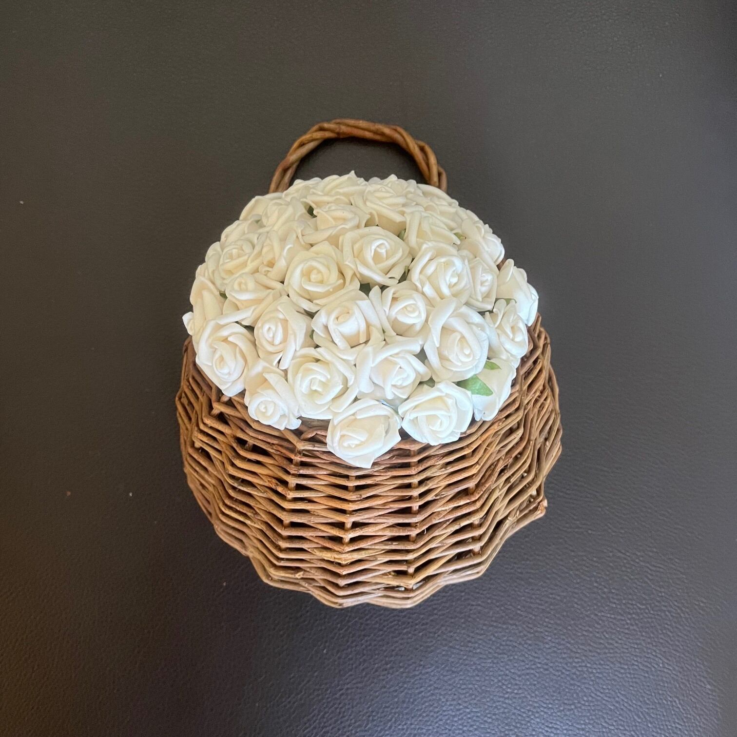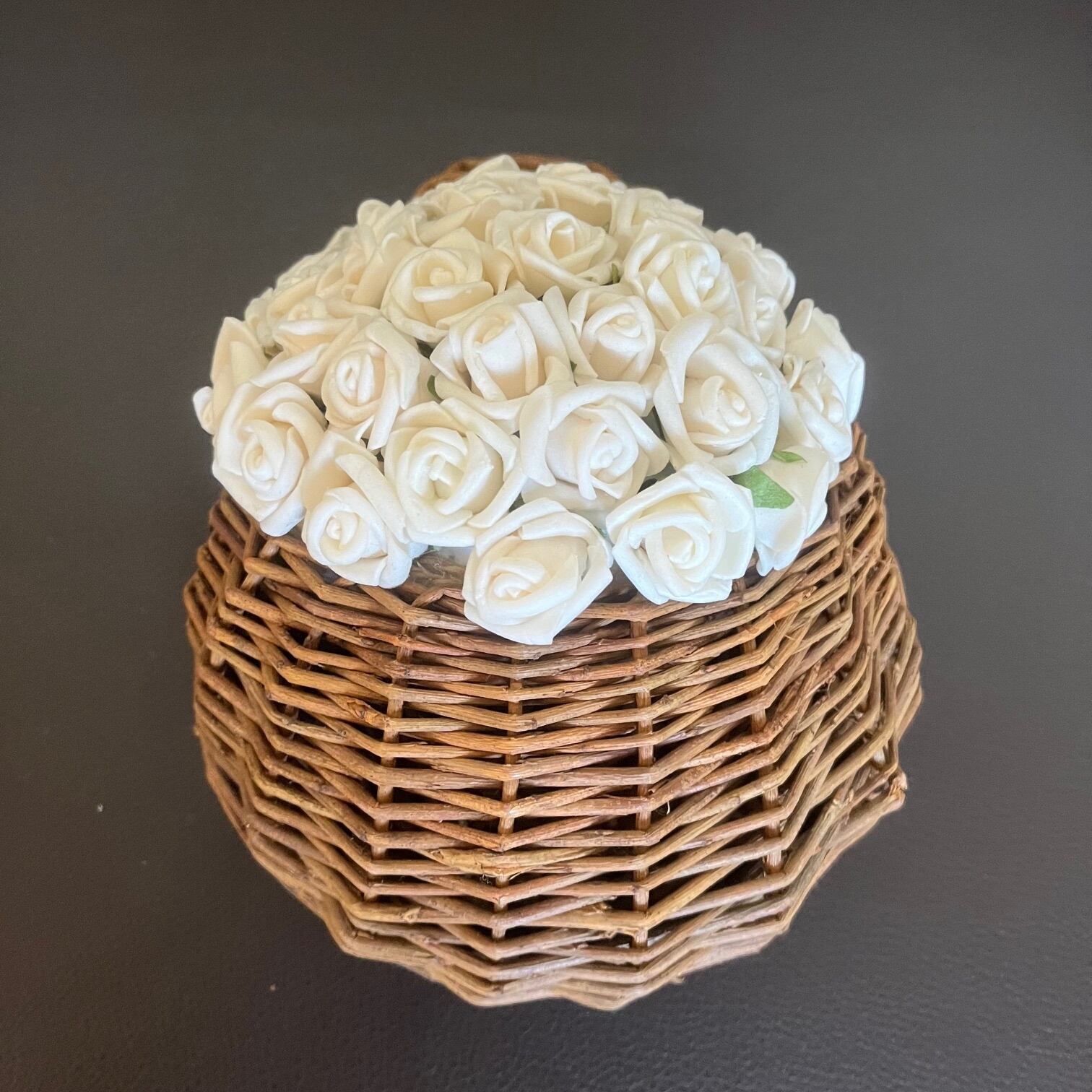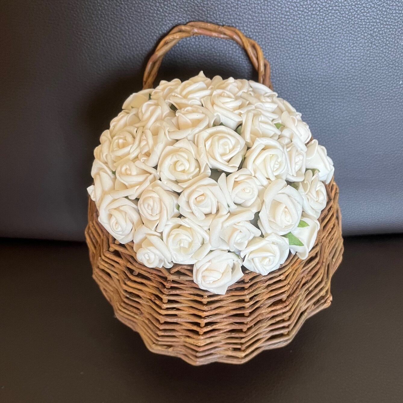 土台には発泡スチロールを用い、籠の中に丁寧にアレンジしております。