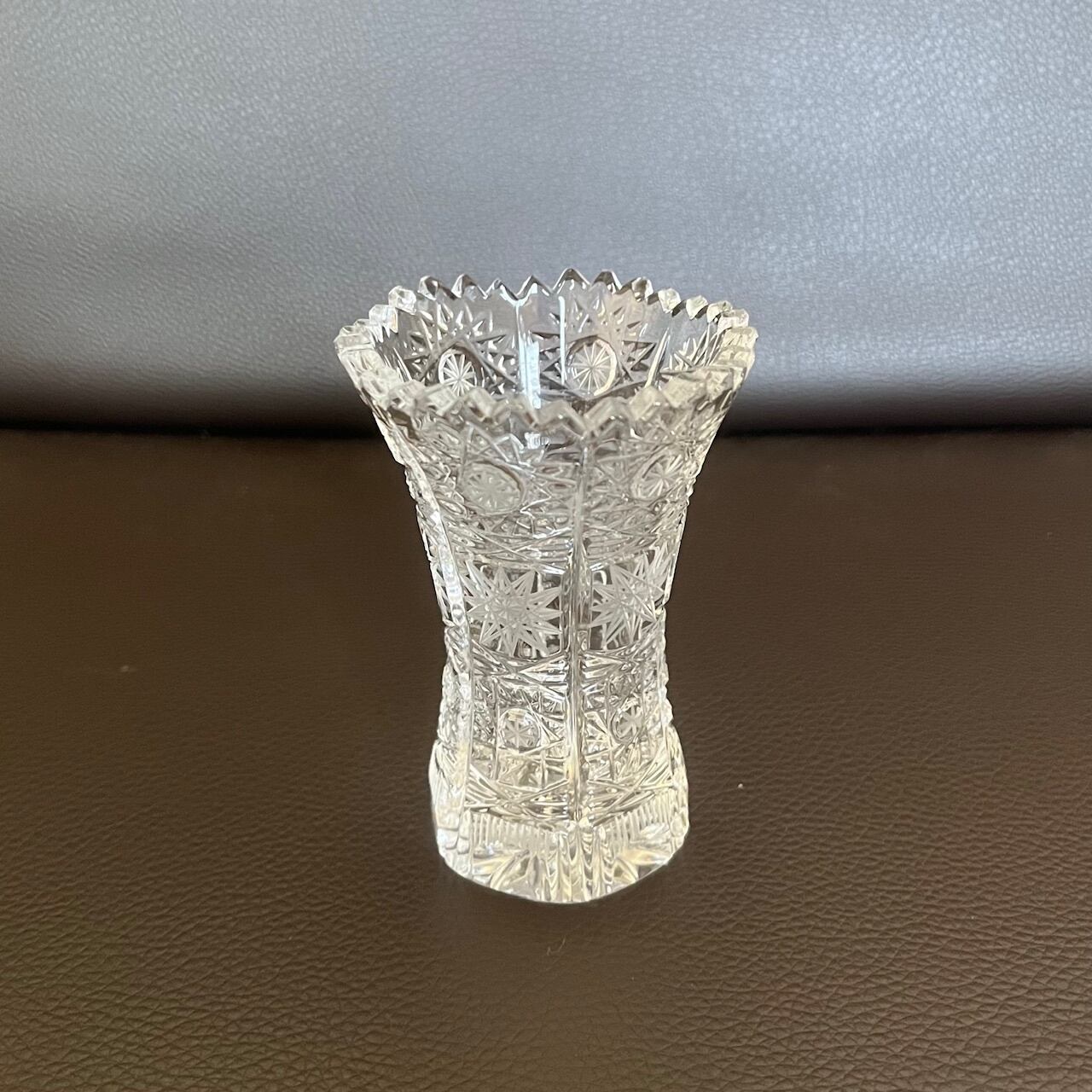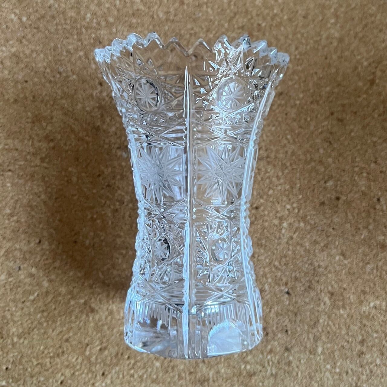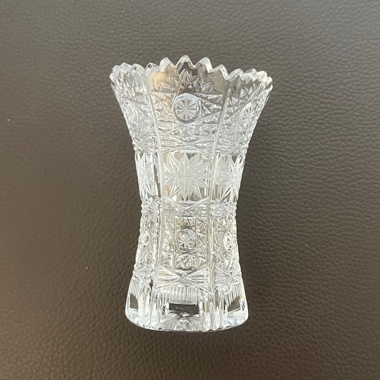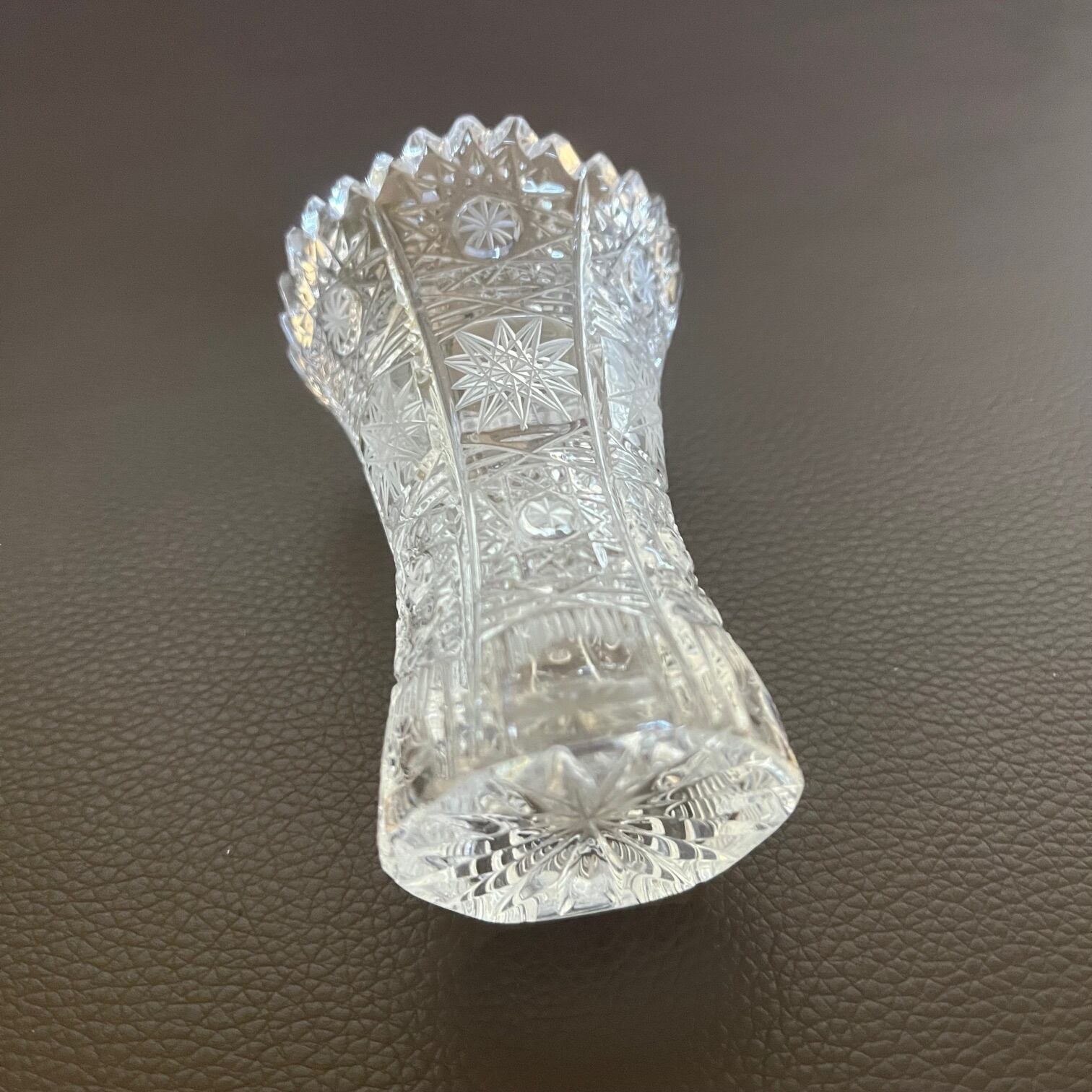 透明のガラス全体に、細やかなカットが施され、縁にかけてギザギザとした装飾が広がる美しいデザイン。
