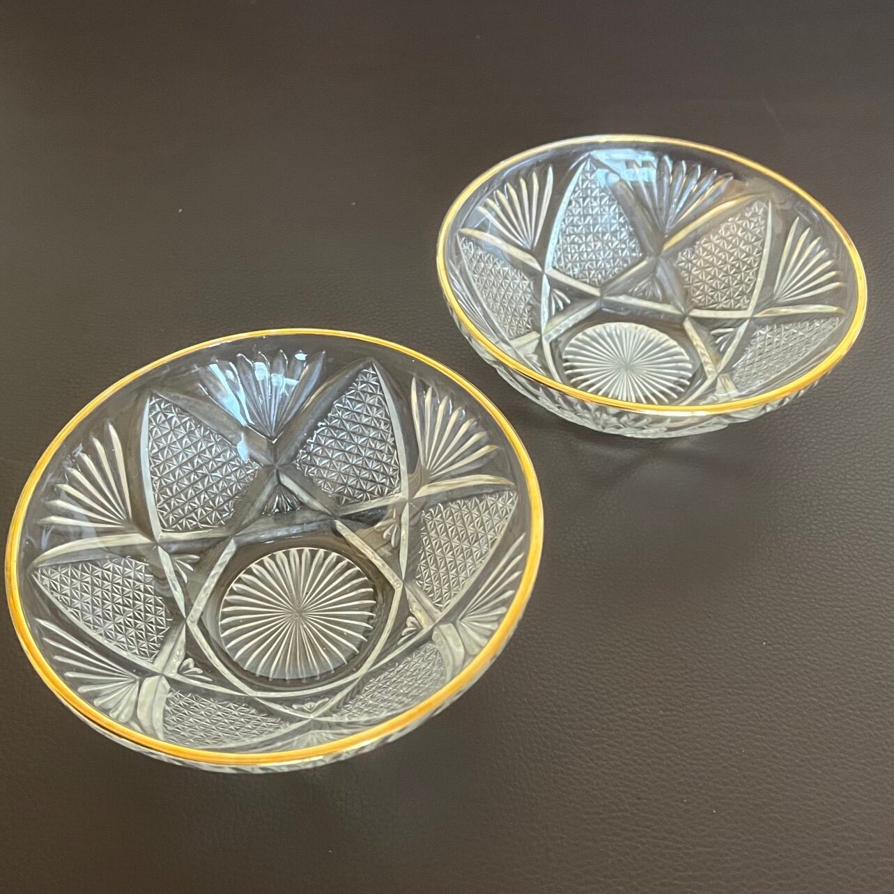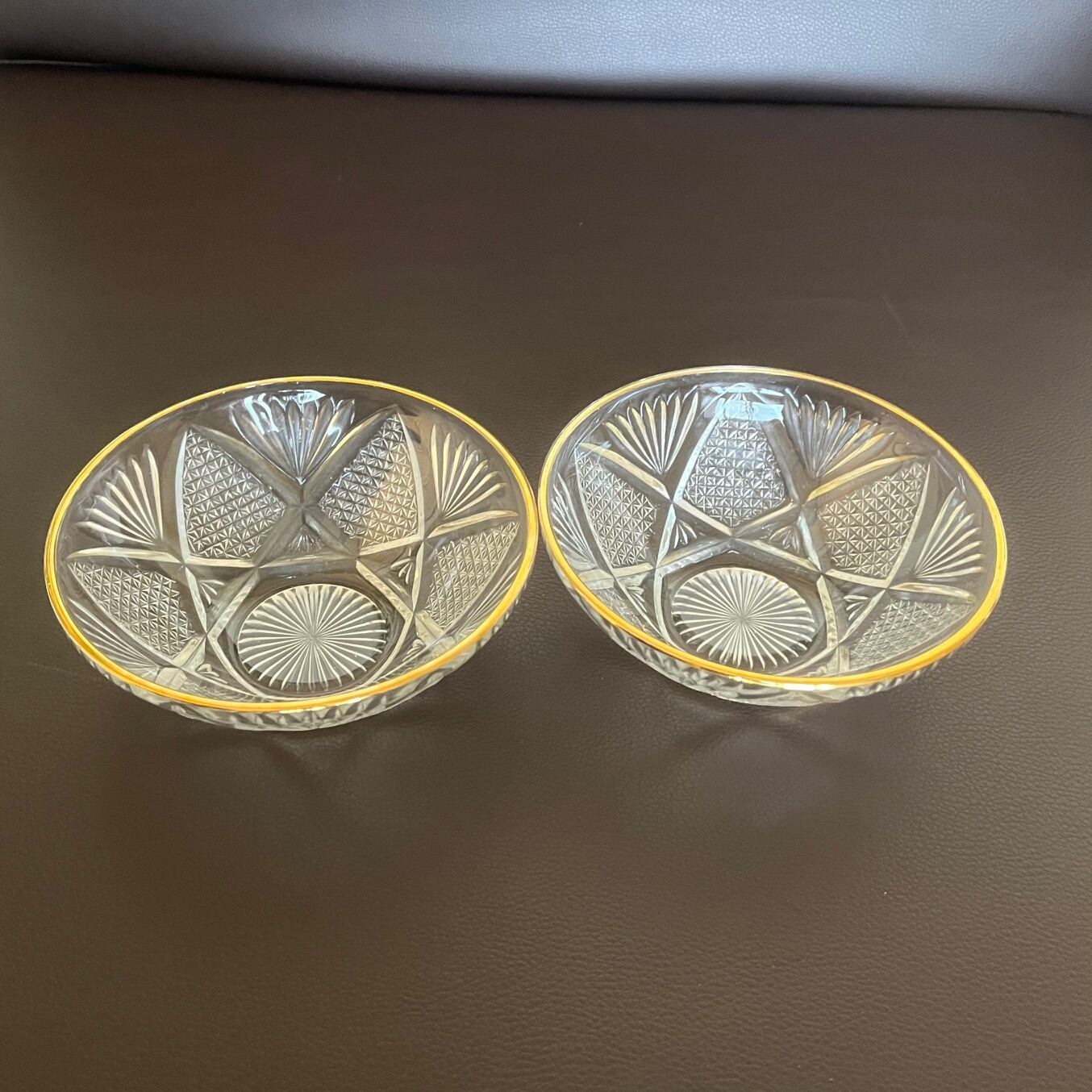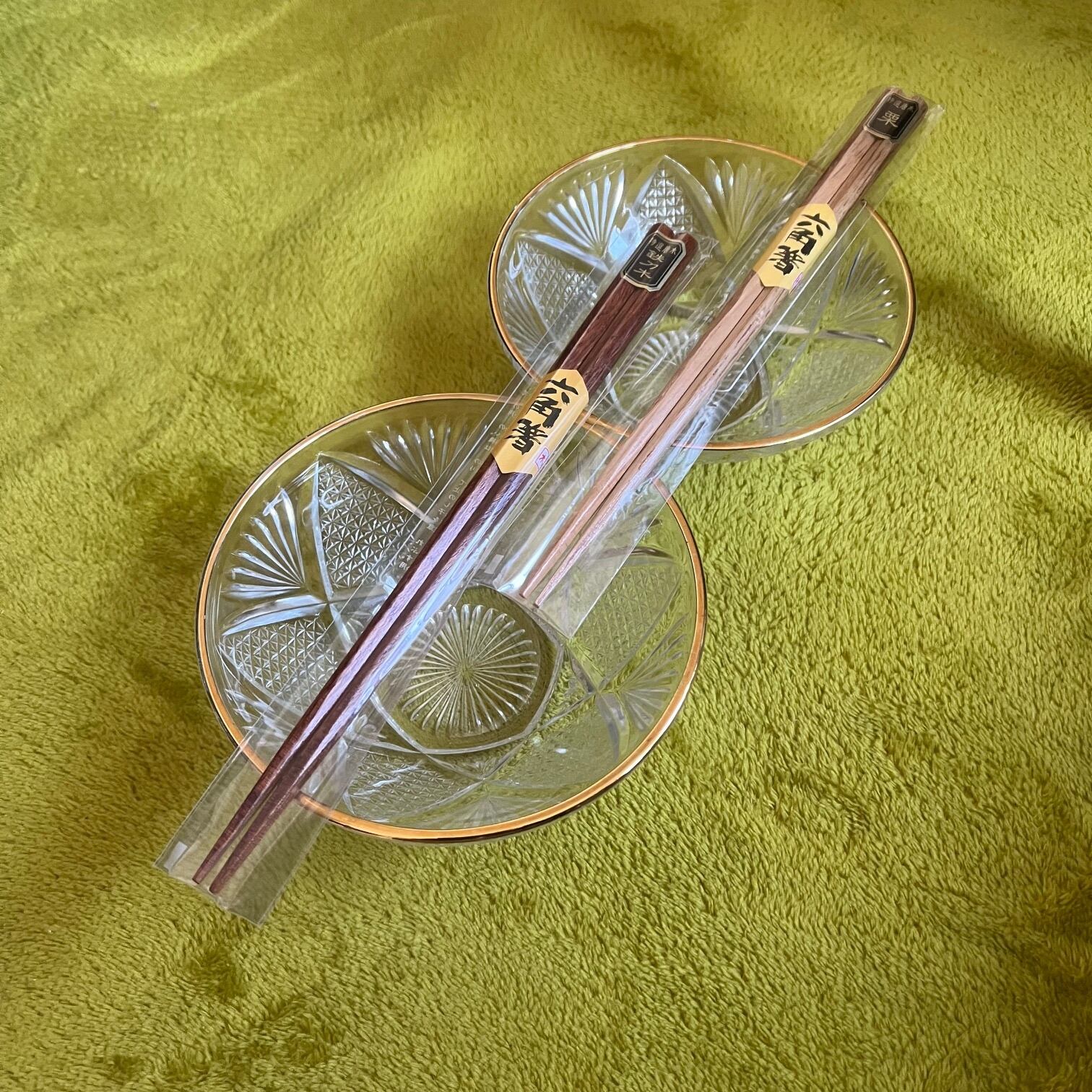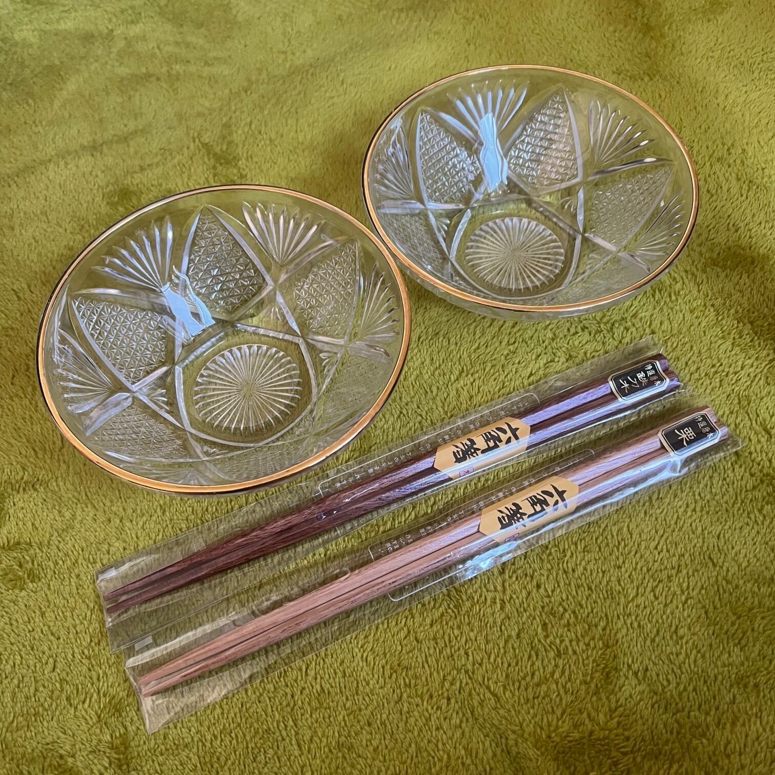 【和と洋の調和】蒔絵金梨地盃洗台&昭和カットガラスボウル 2客ずつセット(計4点)