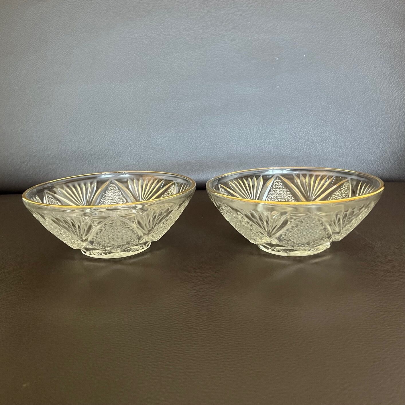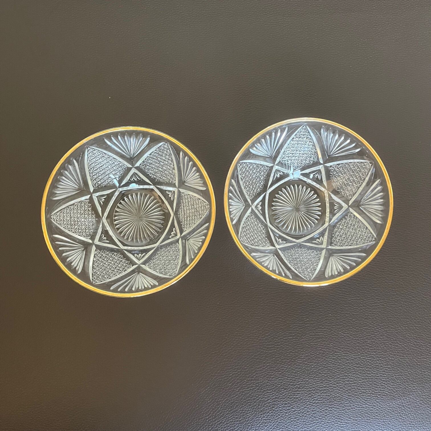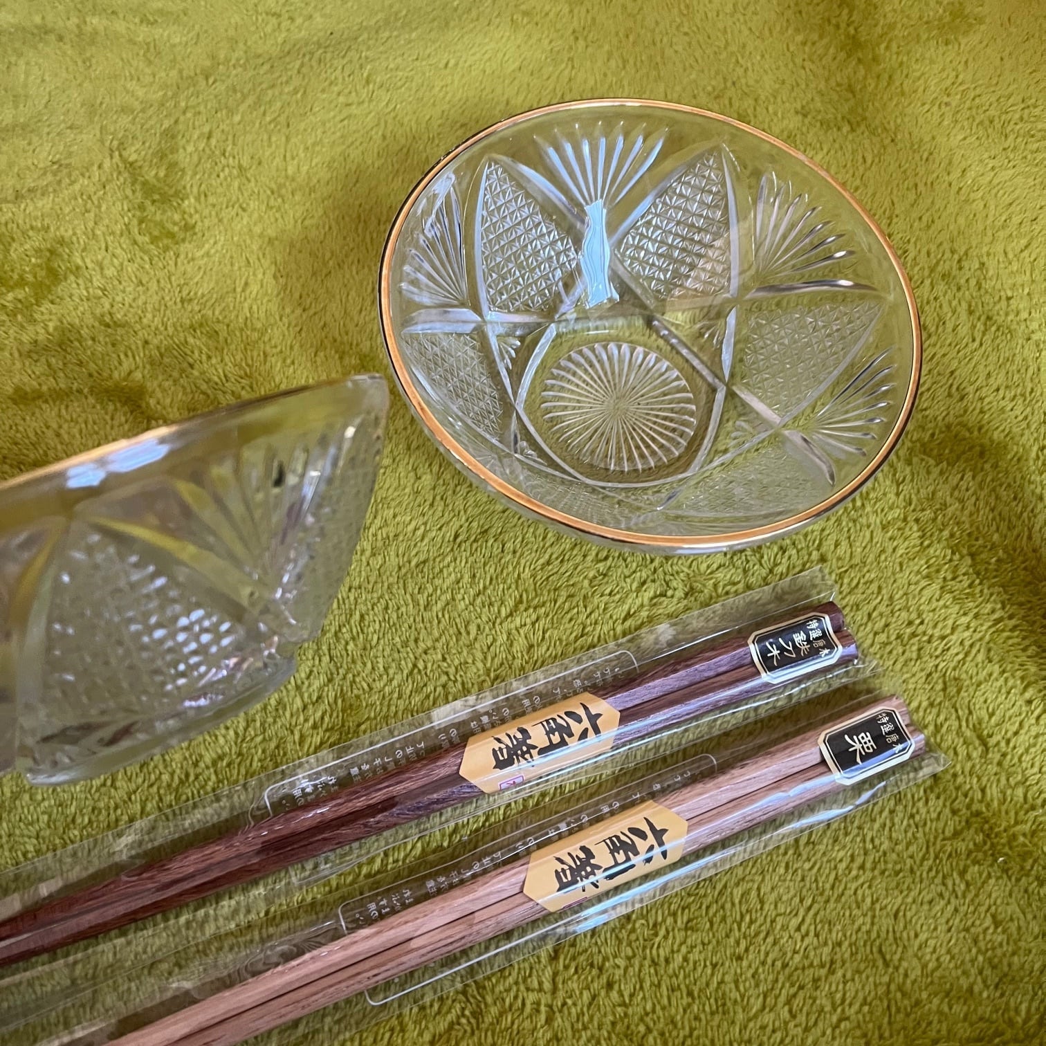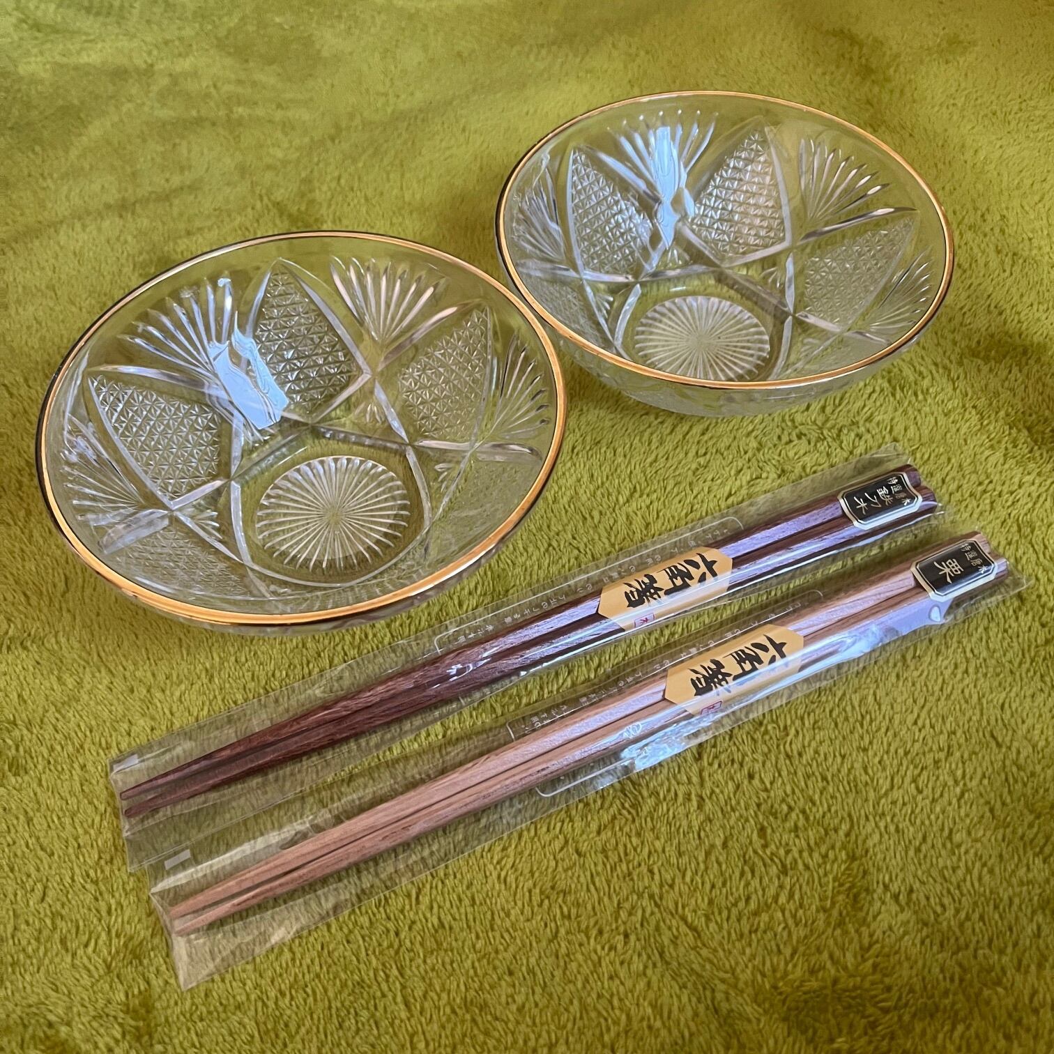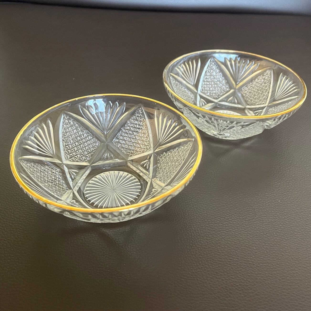 【和と洋の調和】蒔絵金梨地盃洗台&昭和カットガラスボウル 2客ずつセット(計4点)