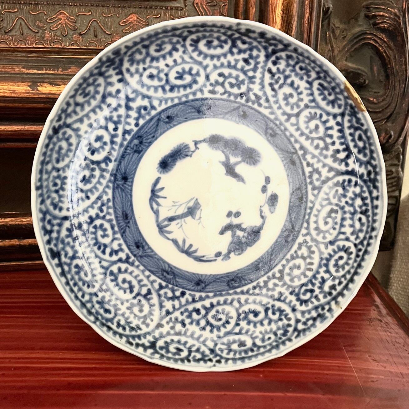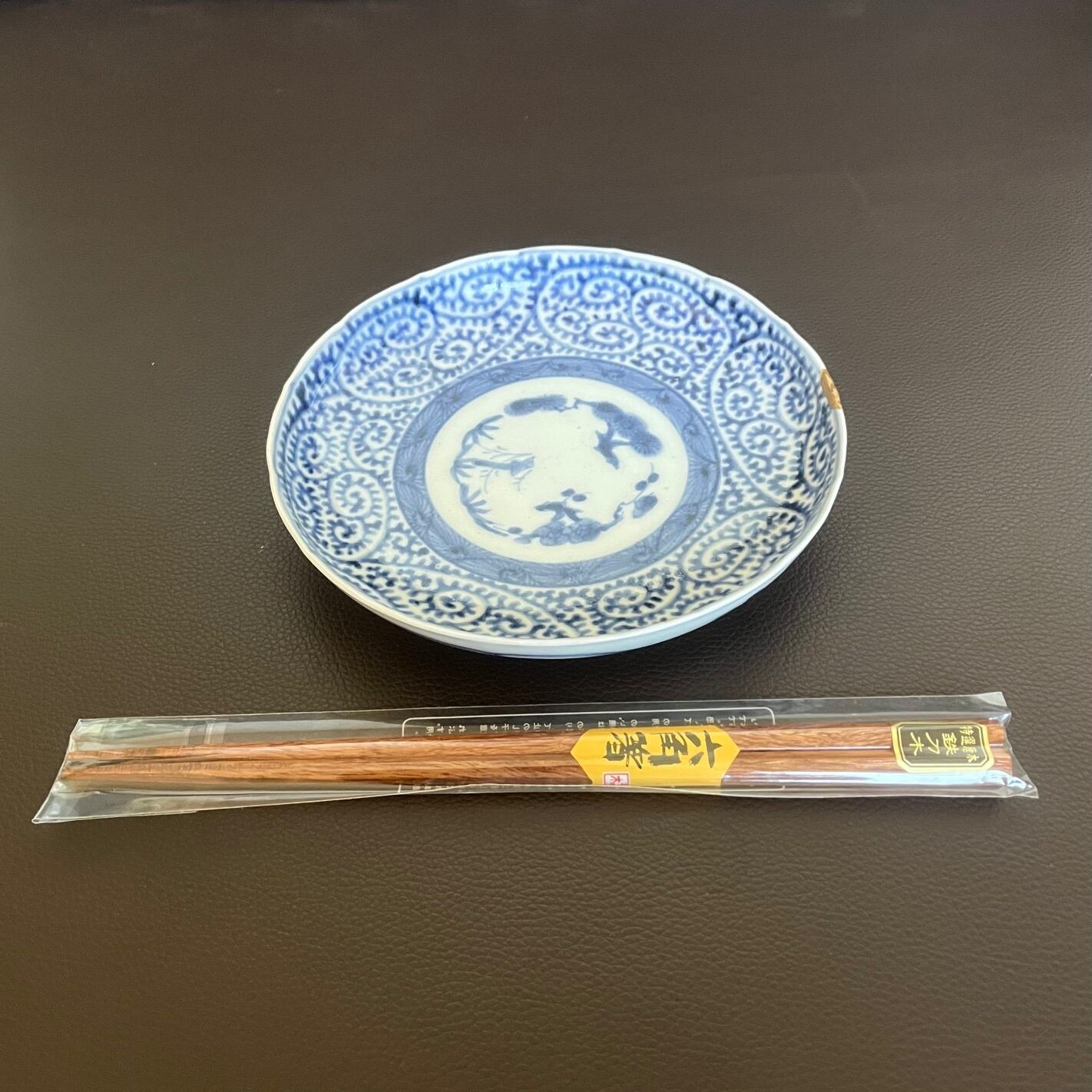 江戸時代の古伊万里、染付蛸唐草紋様の五寸皿です。