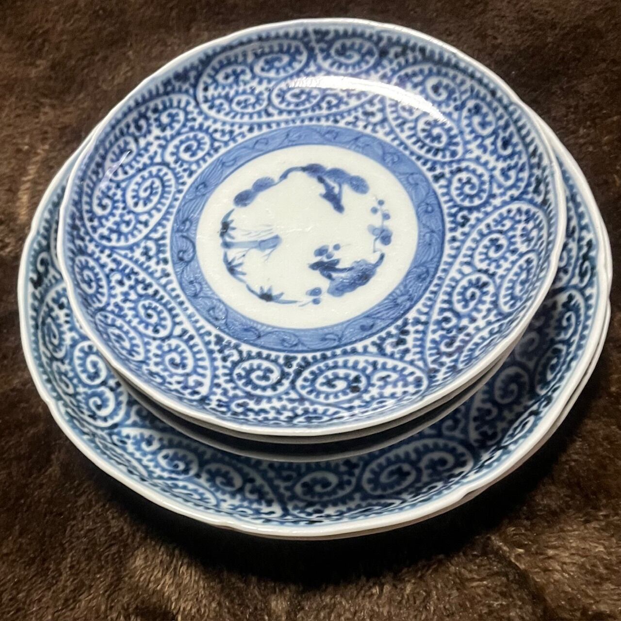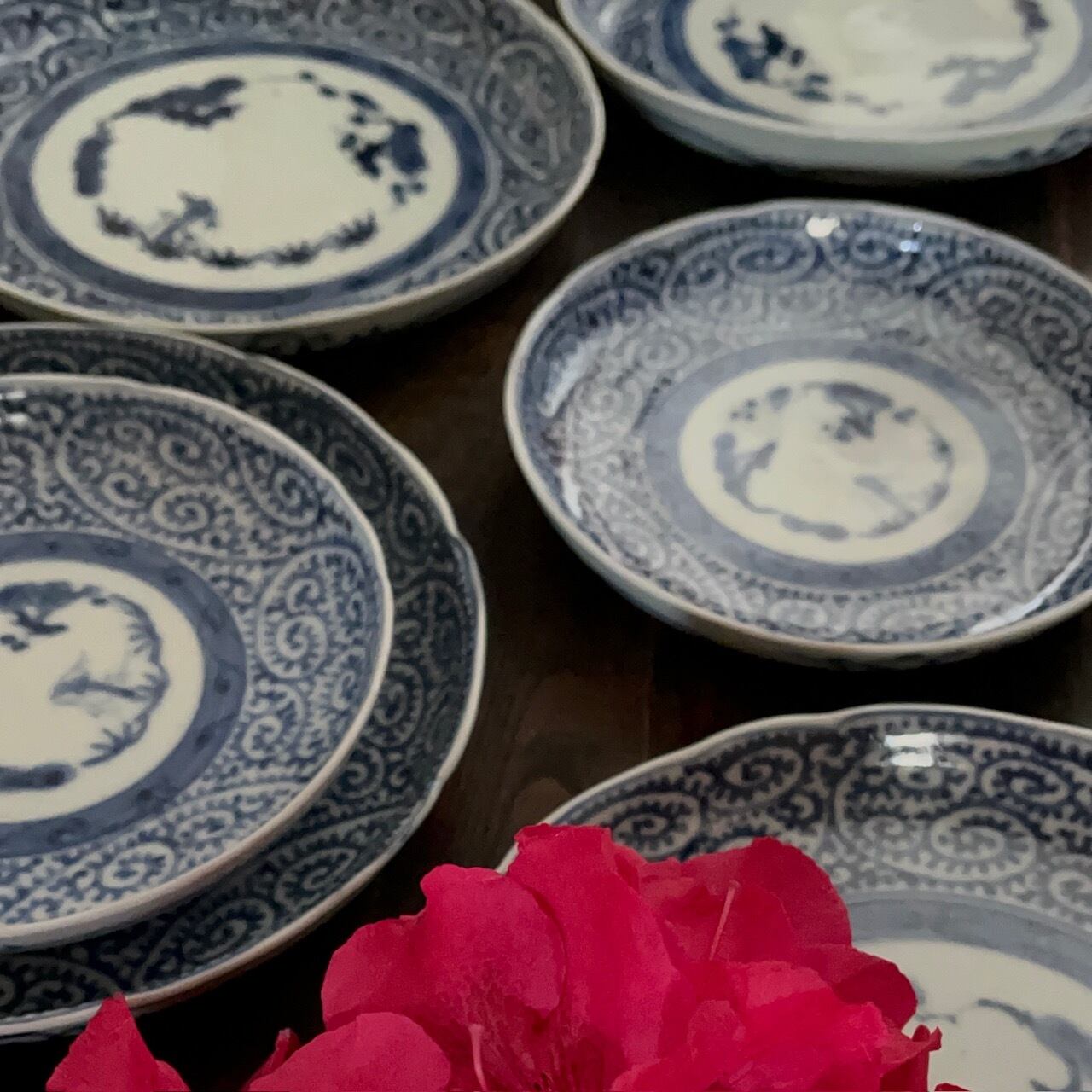 ■古伊万里染付蛸唐草紋様7寸皿5枚組