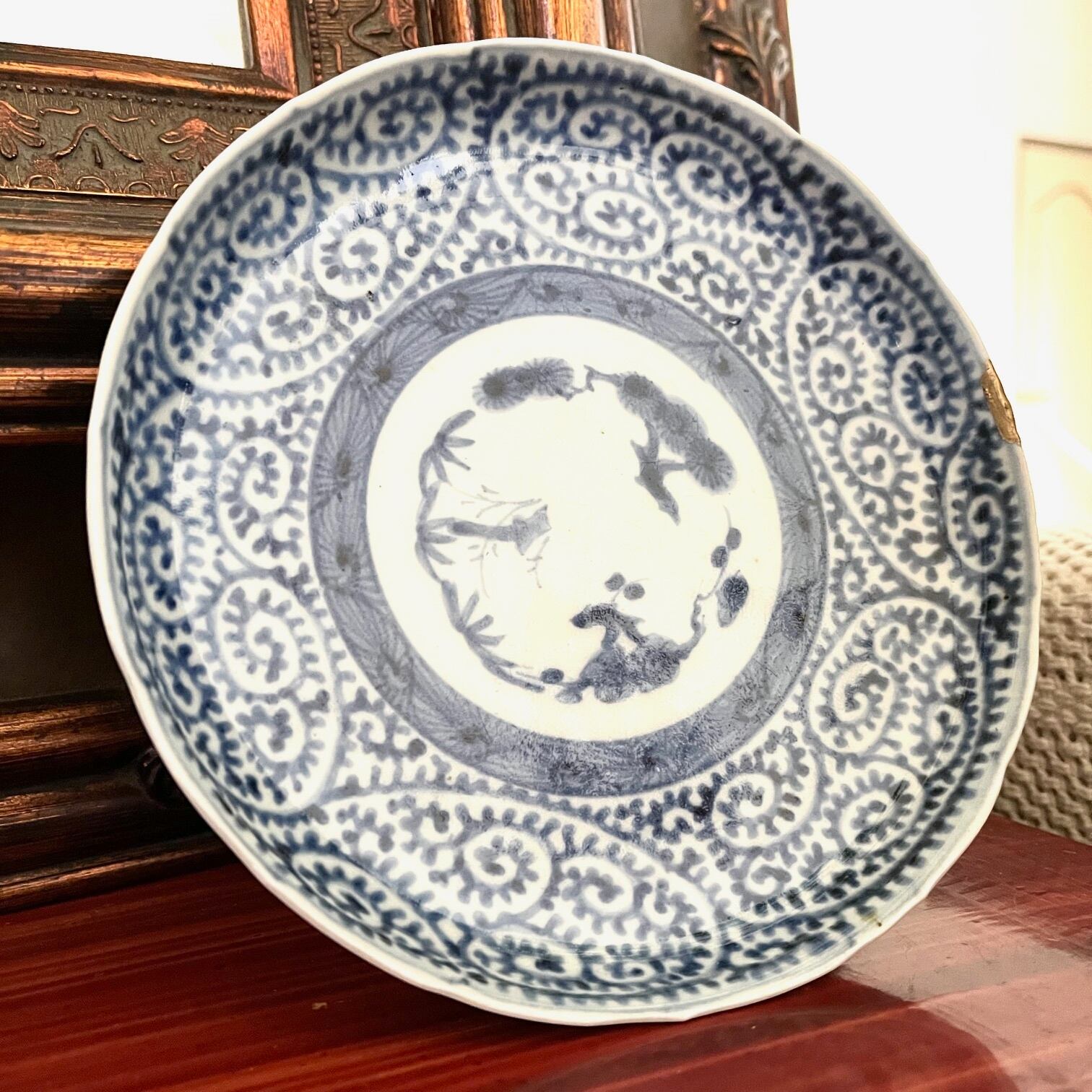 [金継有]古伊万里染付蛸唐草紋様5寸皿