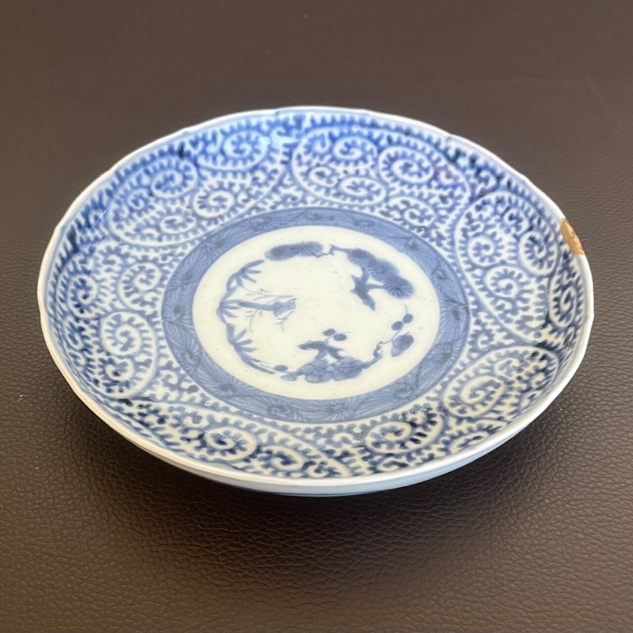 [無傷]古伊万里染付蛸唐草紋様5寸皿