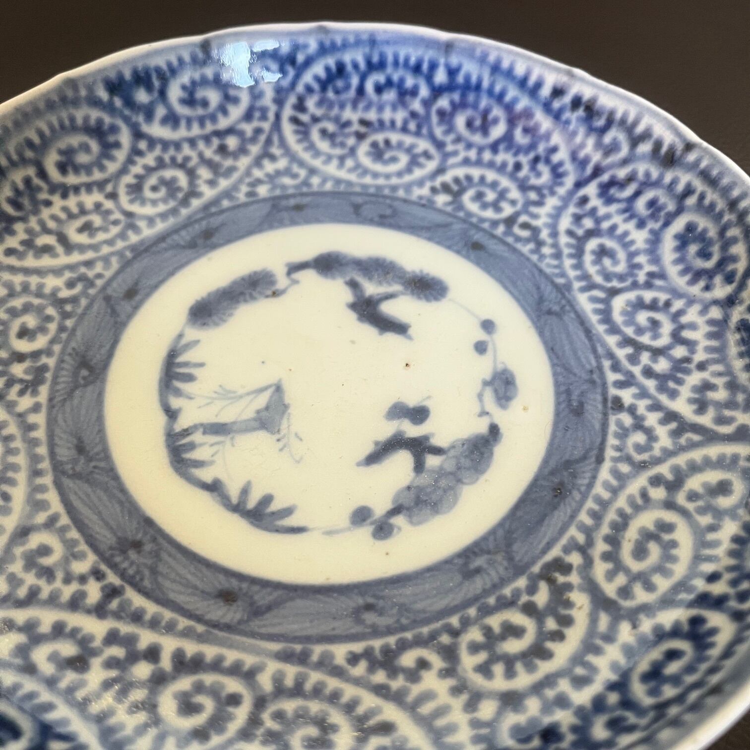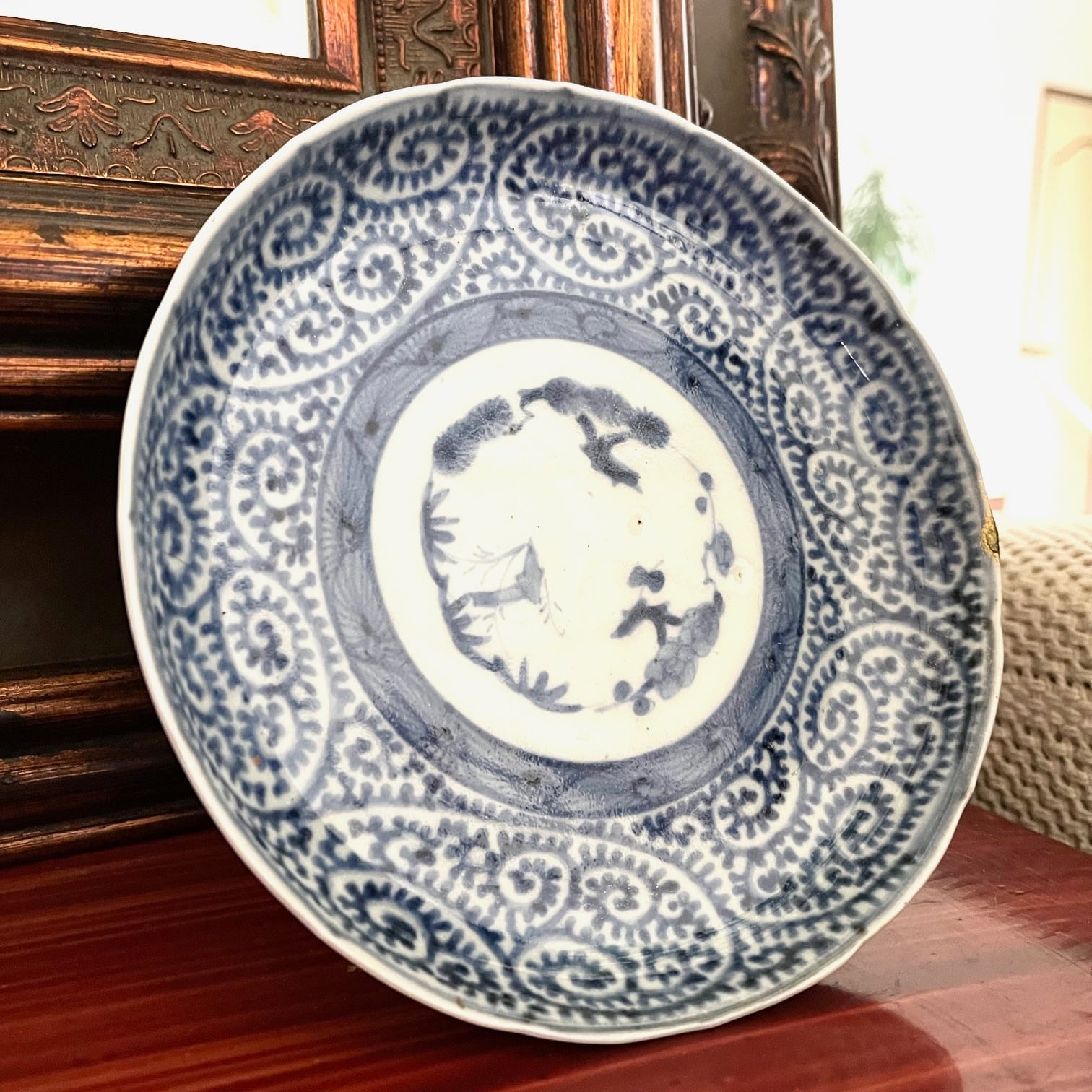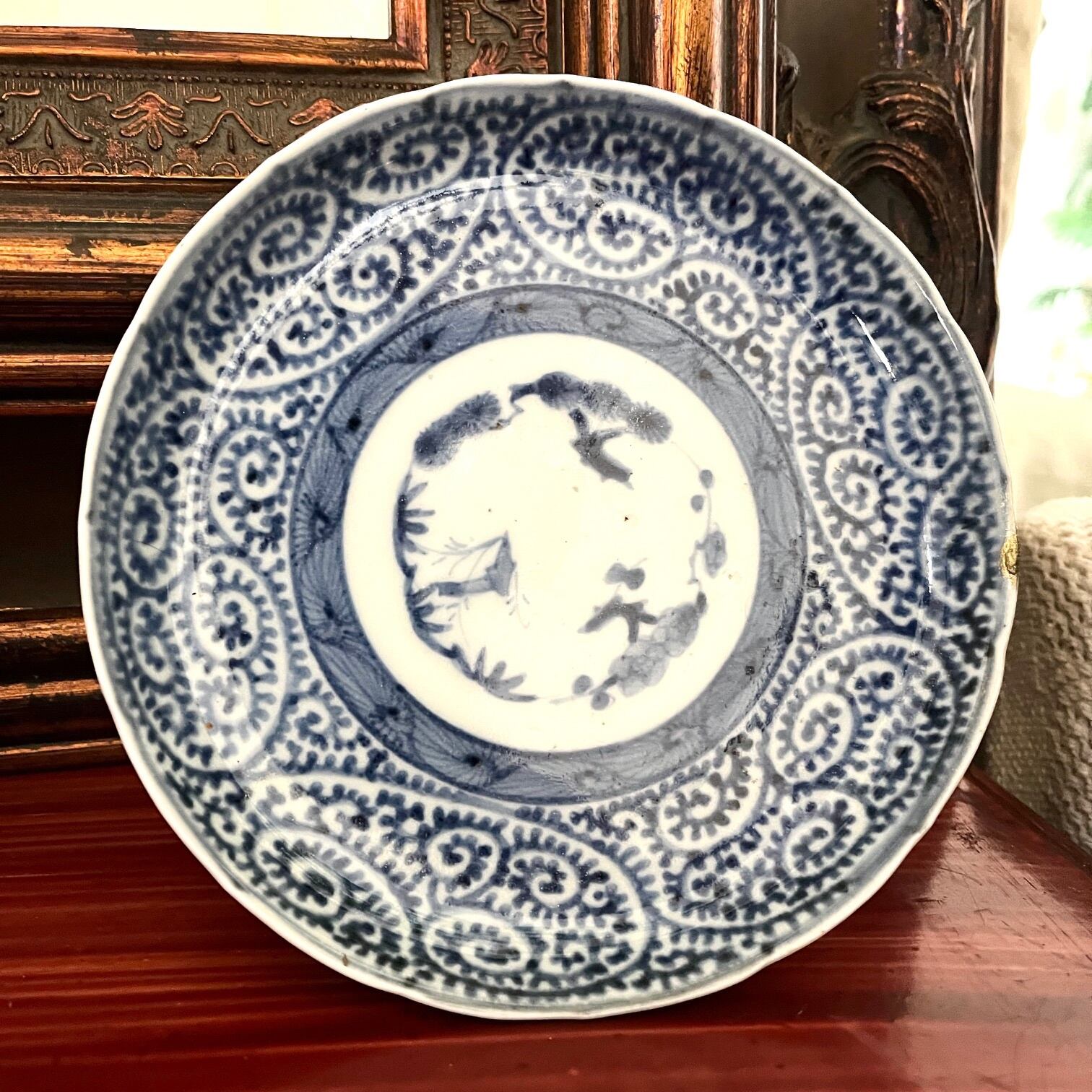 江戸時代の古伊万里、染付蛸唐草紋様の五寸皿です。