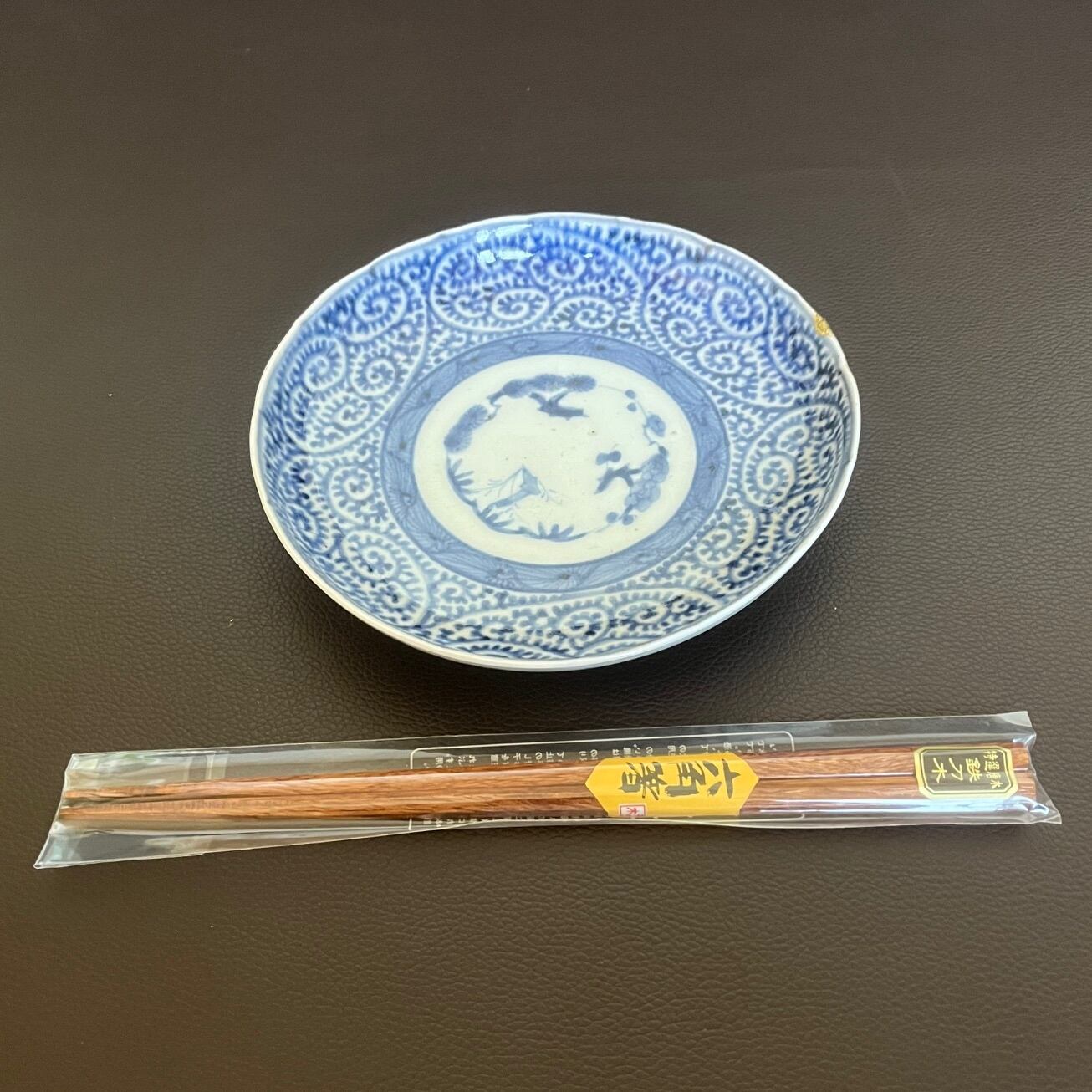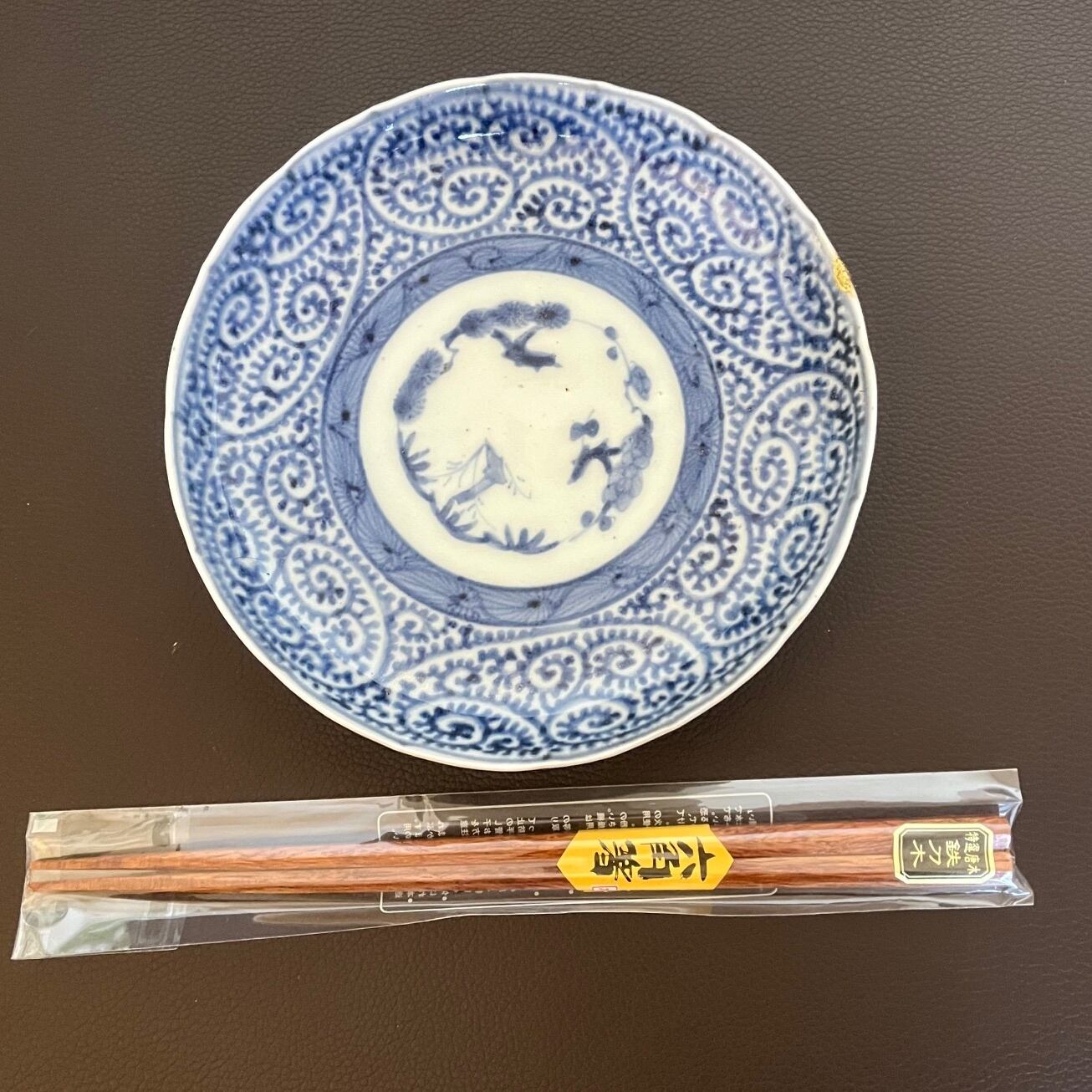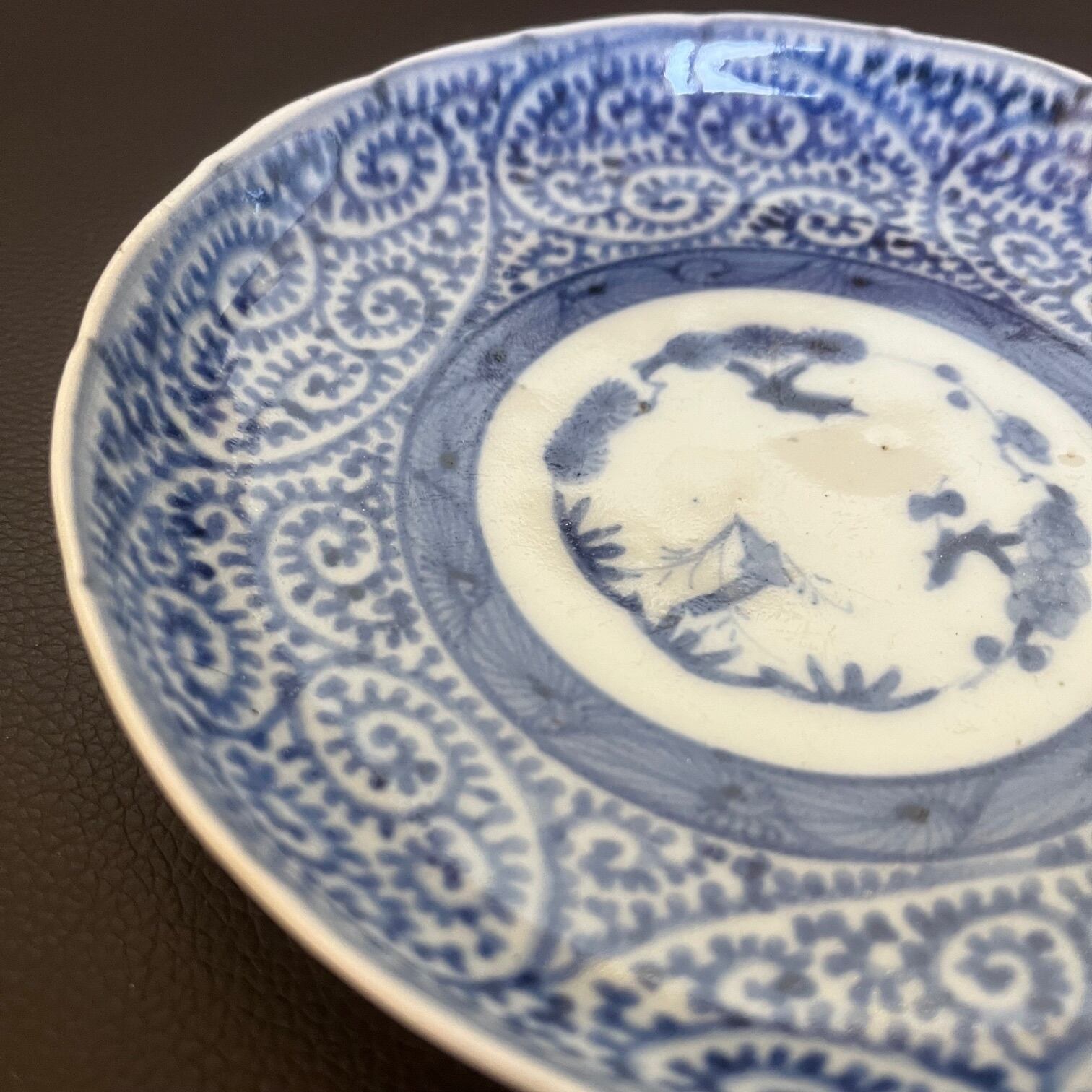 江戸時代の古伊万里、染付蛸唐草紋様の五寸皿です。