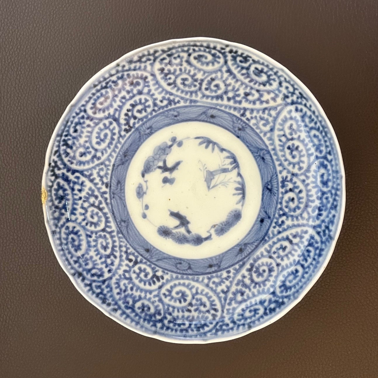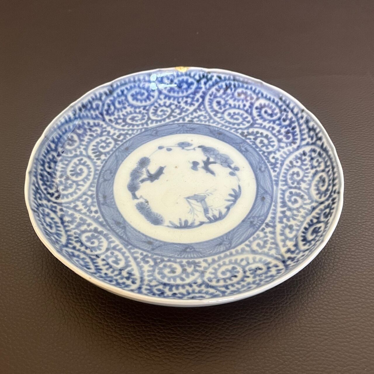 [金継有]古伊万里染付蛸唐草紋様5寸皿 no2