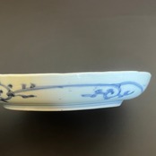 器一面に描かれた蛸唐草文様は、勢いよく広がる唐草の流れが美しく、古伊万里らしい力強い意匠。