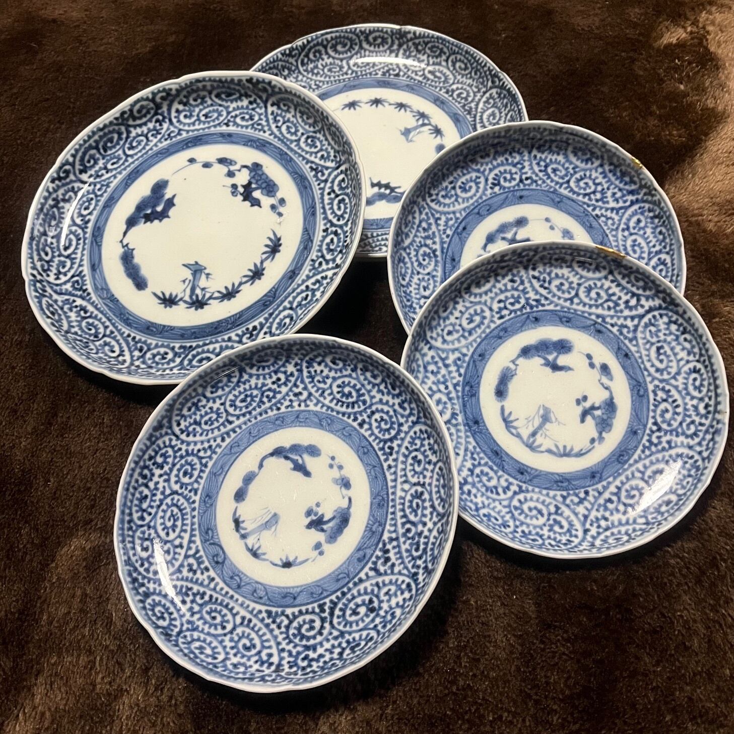 ■古伊万里染付蛸唐草紋様7寸皿5枚組